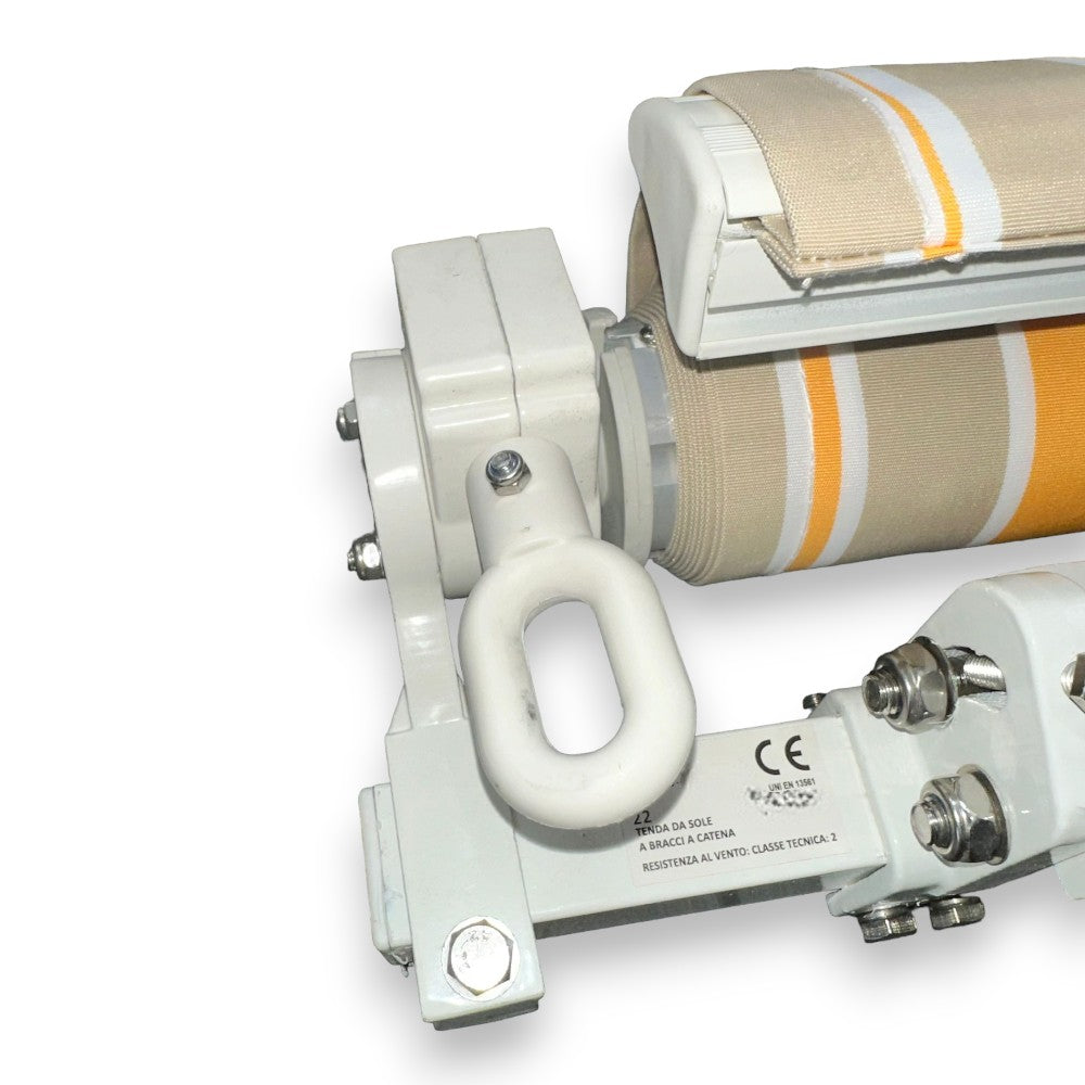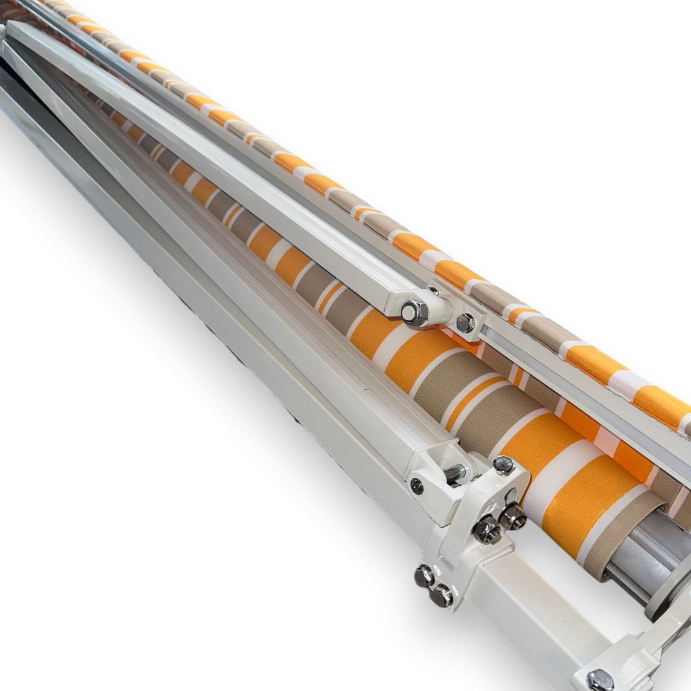 Tenda da sole per balcone gialla a righe con struttura in alluminio con kit per il mo...