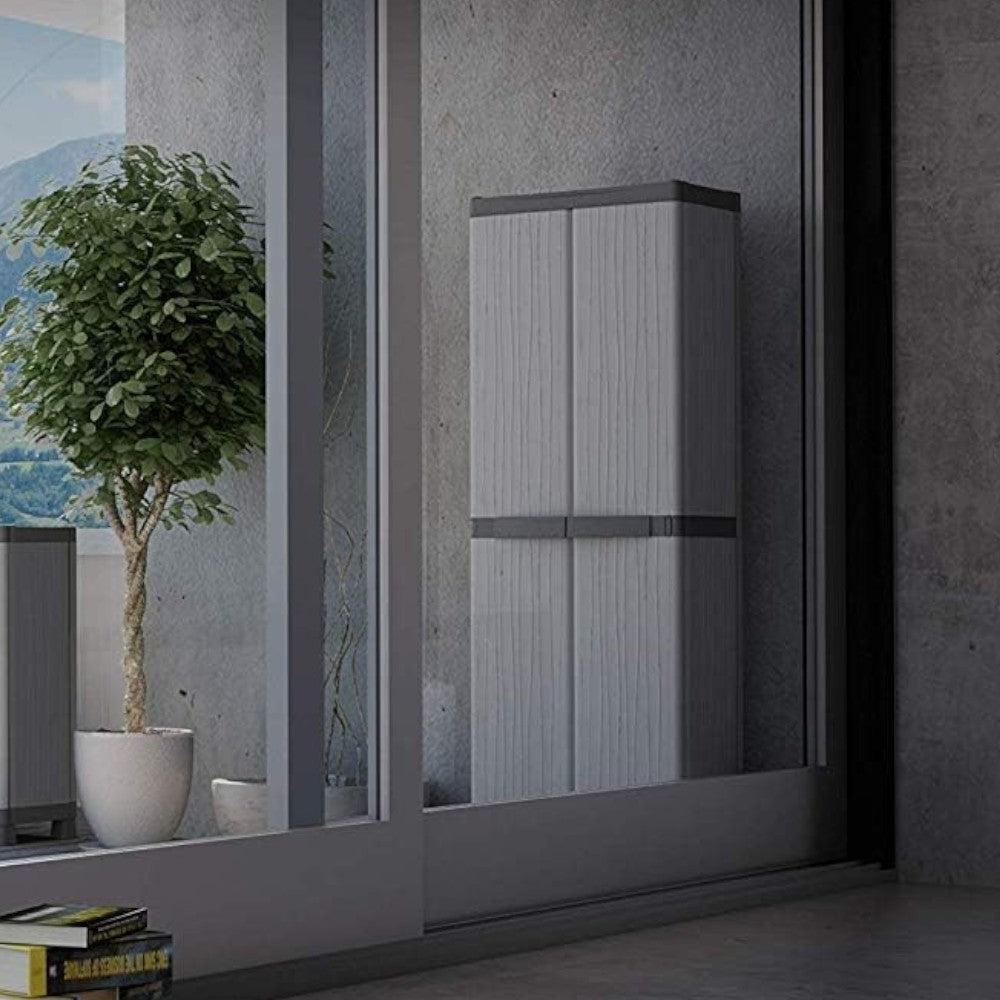 Armadio basso termoplastico grigio con ante e ripiani regolabili resistente alla piog...