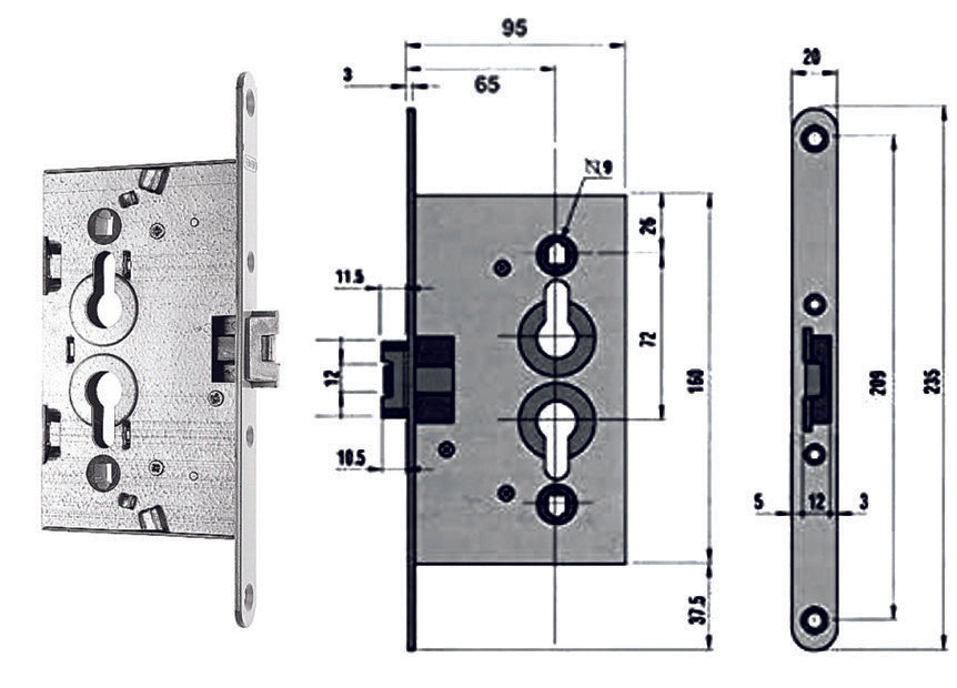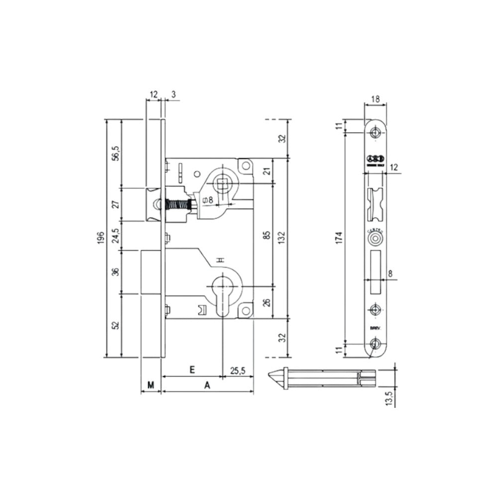 serratura triplice da infilare con chiusura a doppia mappa per fasce altezza cassa 82...