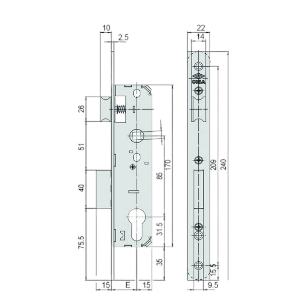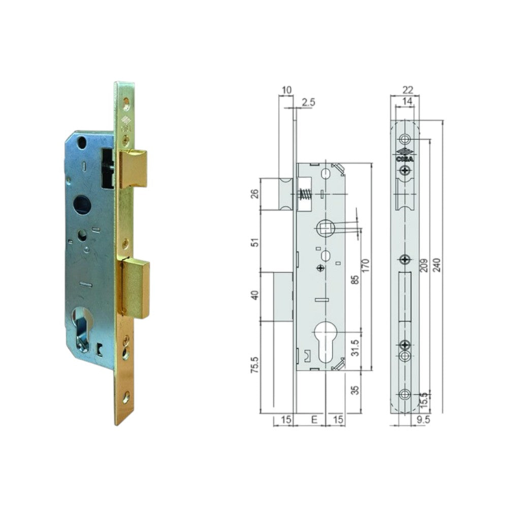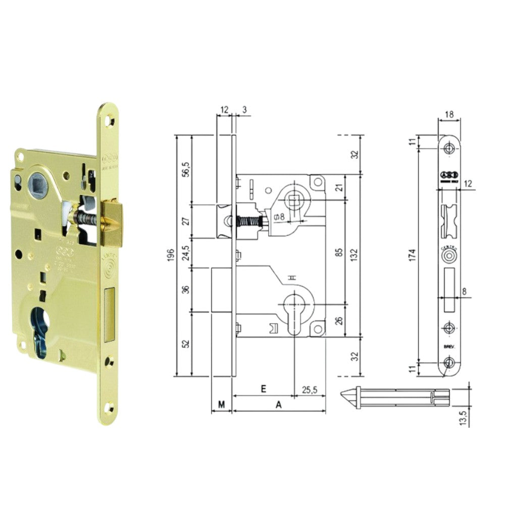Serratura da infilare cilindro europeo bordi quadrati acciaio zinco catenaccio 1 mand...