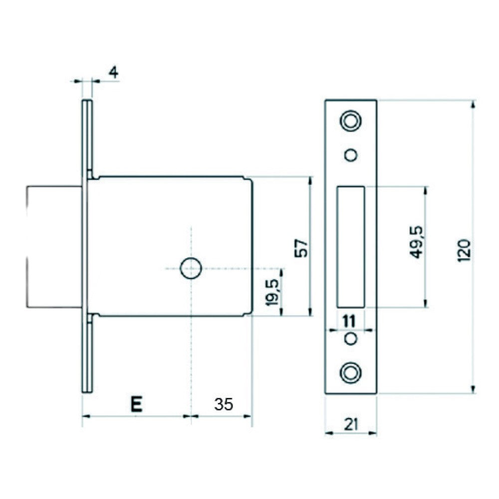 Serratura da infilare per porte strette acciaio inox con catenaccio e scrocco reversi...