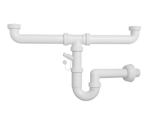 Sifone in polipropilene per lavelli a due vasche senza piletta