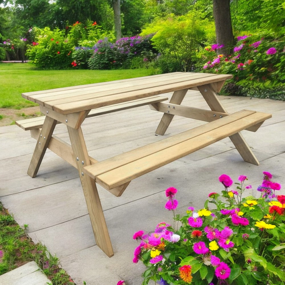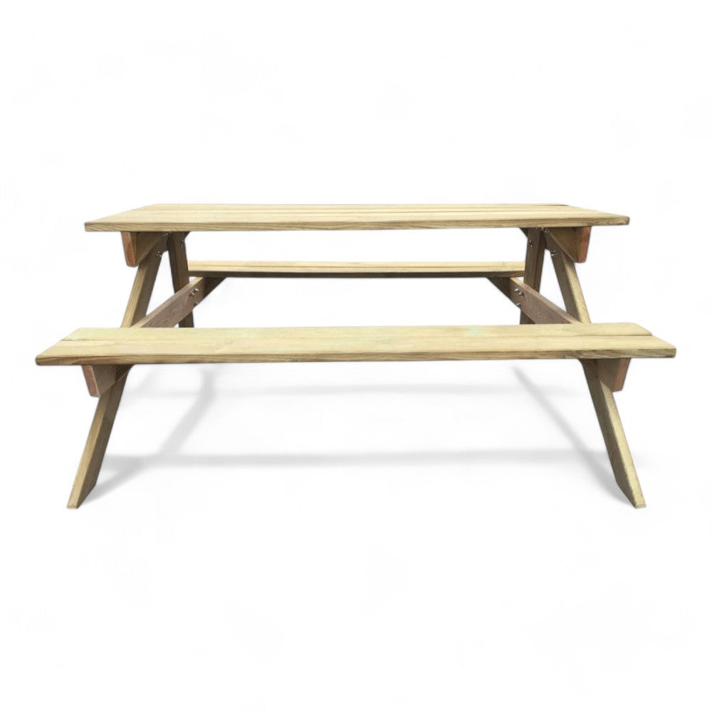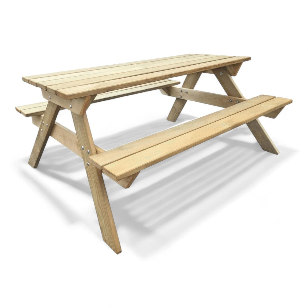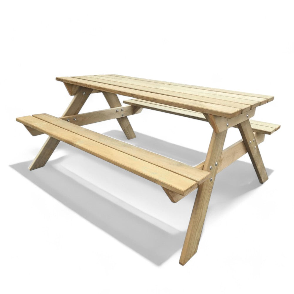 Tavolo picnic in legno di pino impregnato con panche 180x150xH70 cm resistente per es...