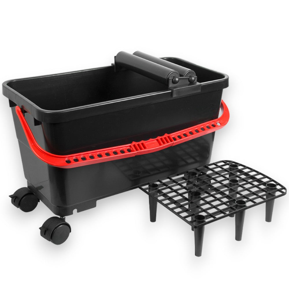 Vaschetta per lavaggio pavimenti con griglia e due rulli capacità 13 litri con ruote ...