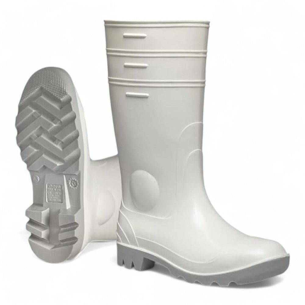 Stivali sicurezza pvc bianchi con puntale acciaio suola antiscivolo resistente olio g...