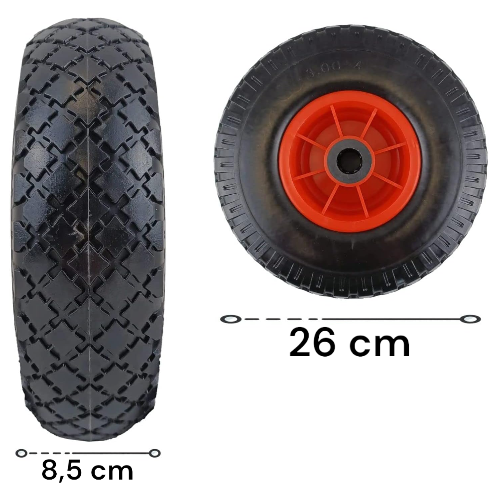 Ruota pneumatica per carrello con diametro 20xH5 cm con cuscinetto e cerchio in resina