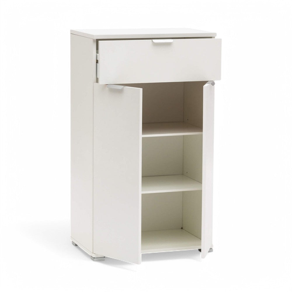 Mobiletto bianco con 2 ante e cassetto truciolare bilaminato 60x38xH103 cm
