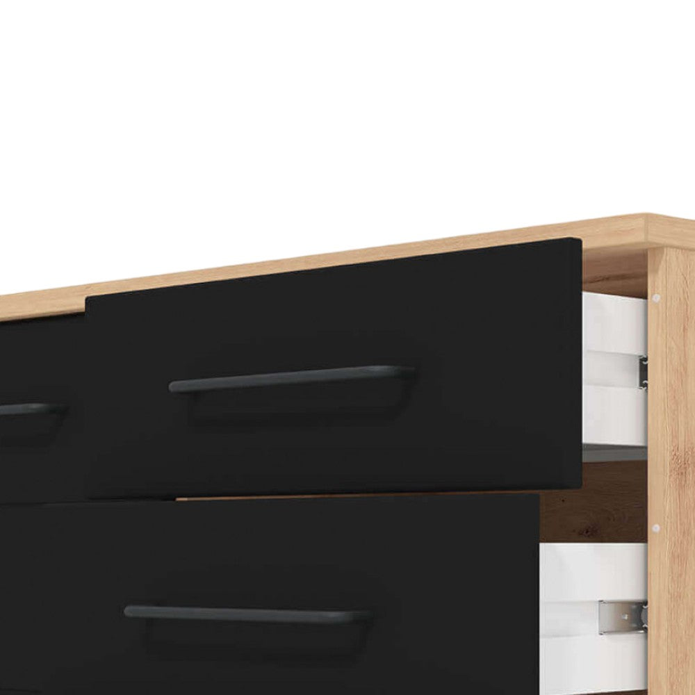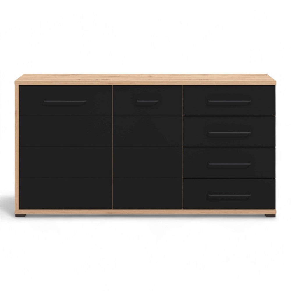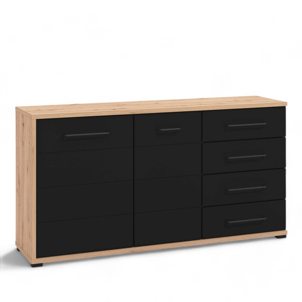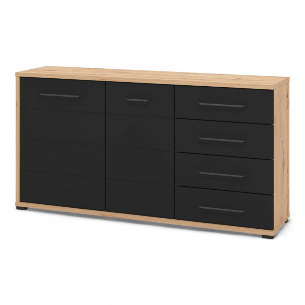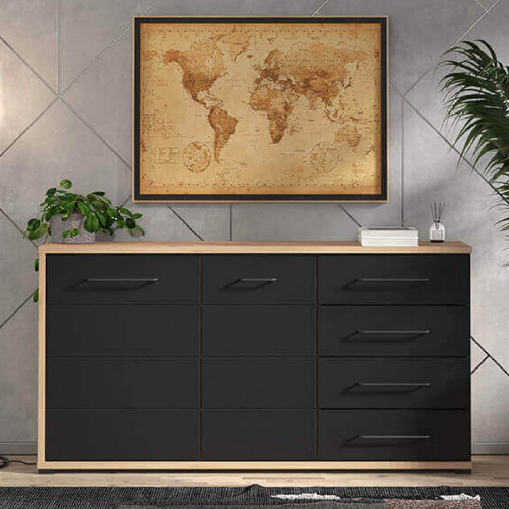 Mobile credenza madia da interno in acciaio e legno con ruote e 7 cassetti Dark