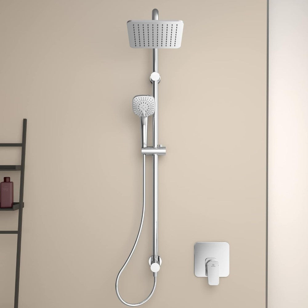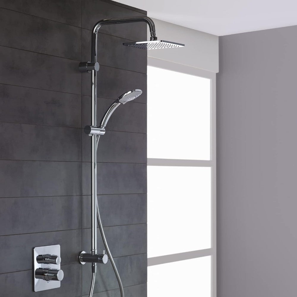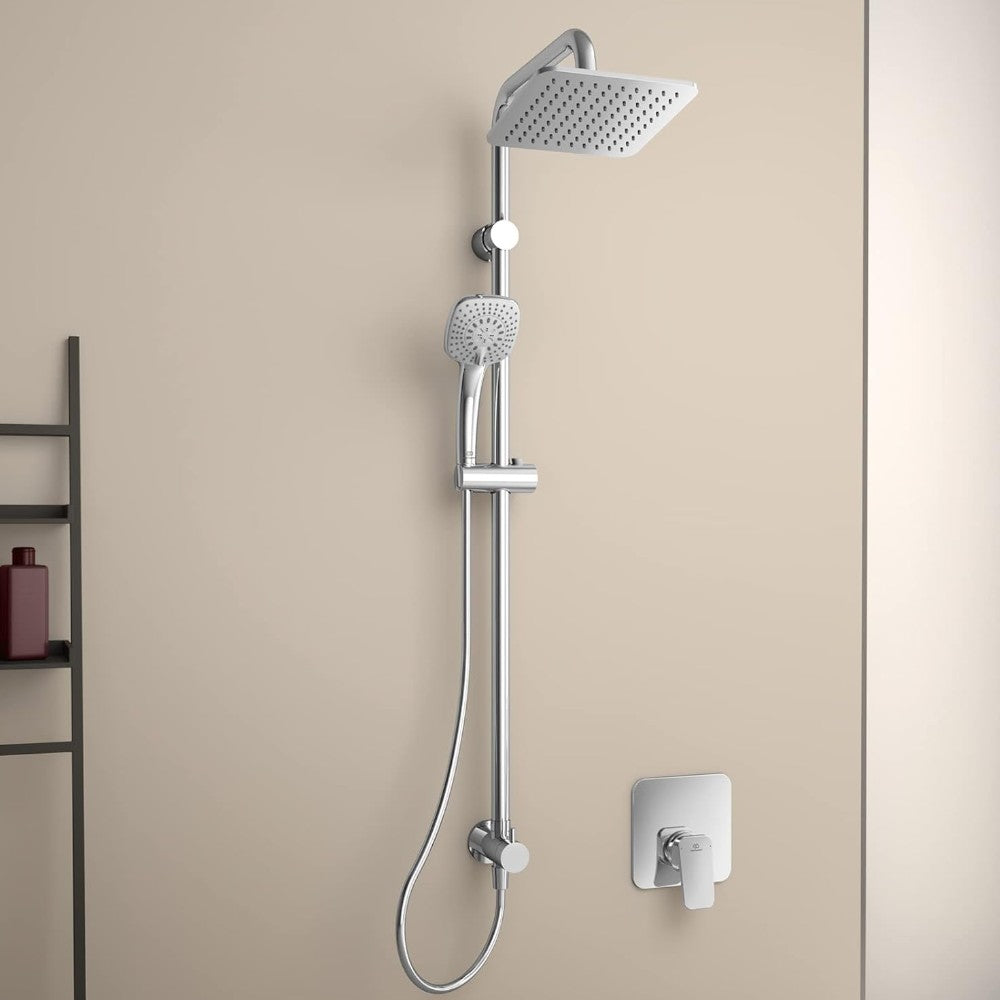 Colonna doccia cromata con soffione grande e doccino con getto regolabile Luxury