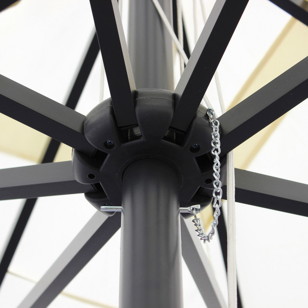 Ombrellone a palo centrale quadrato 3x3 m beige in poliestere con palo in alluminio nero