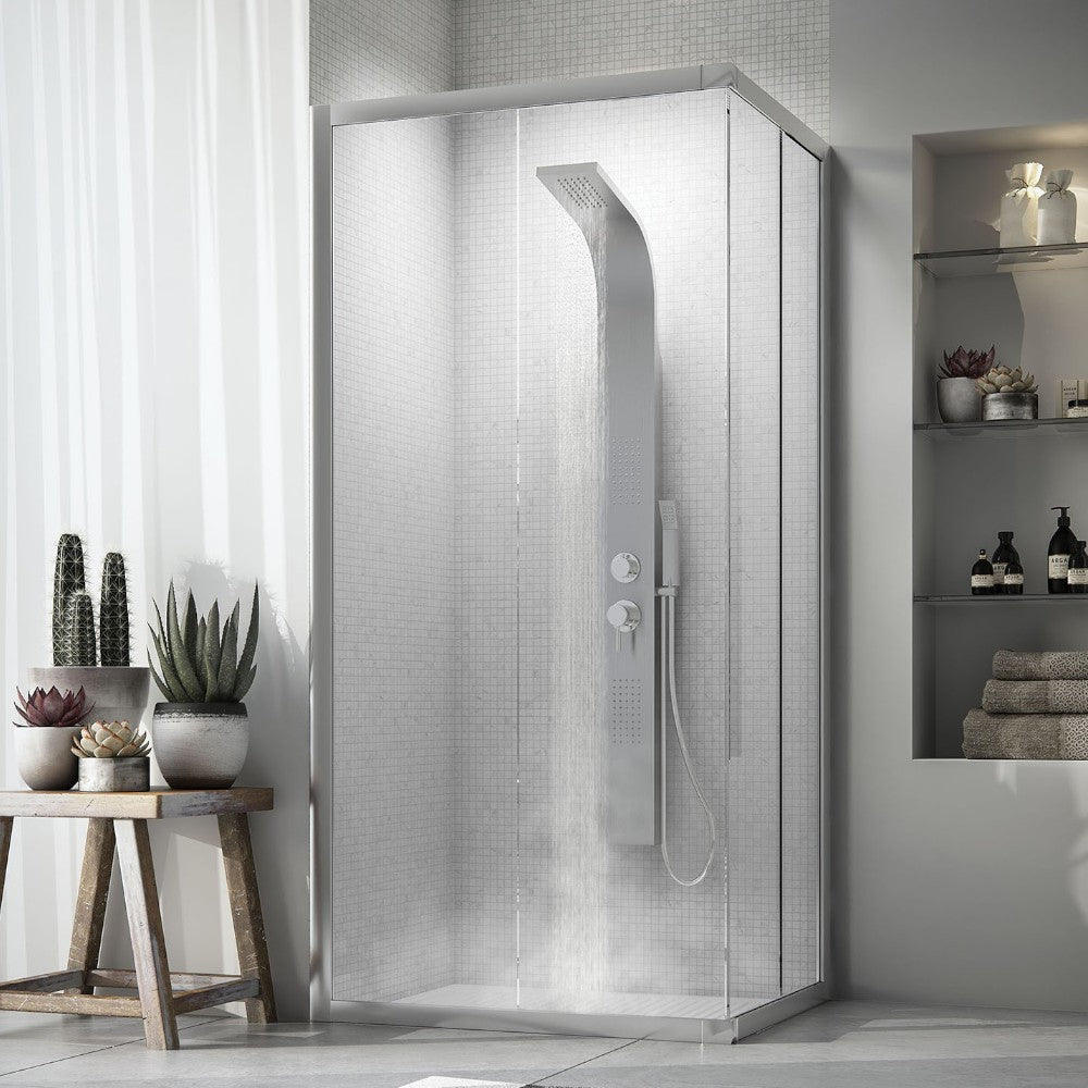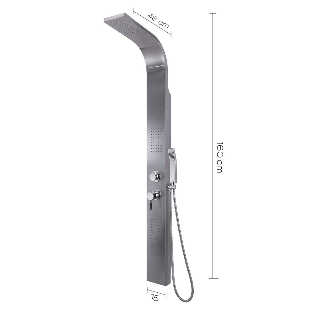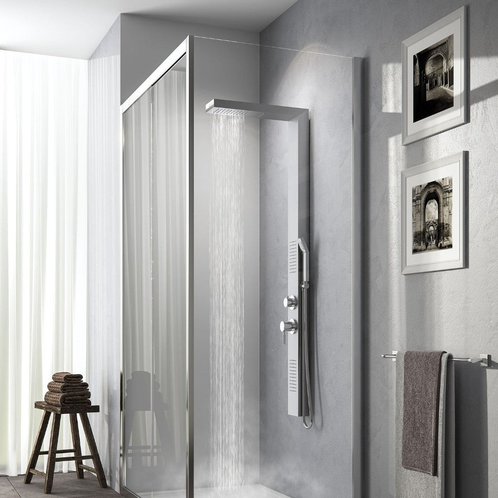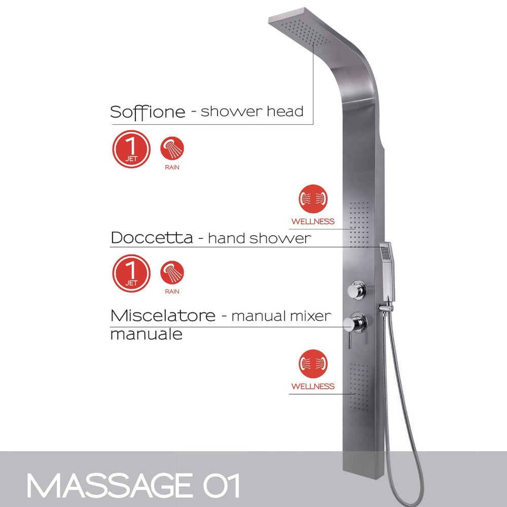 Pannello doccia multifunzione in acciaio inox con getti massaggio e miscelatore manua...