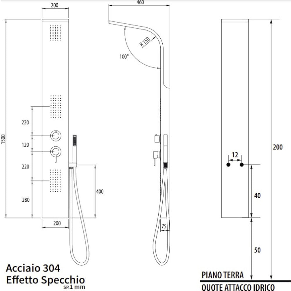 Pannello doccia multifunzione in acciaio 304 effetto specchio con doccetta mono getto...