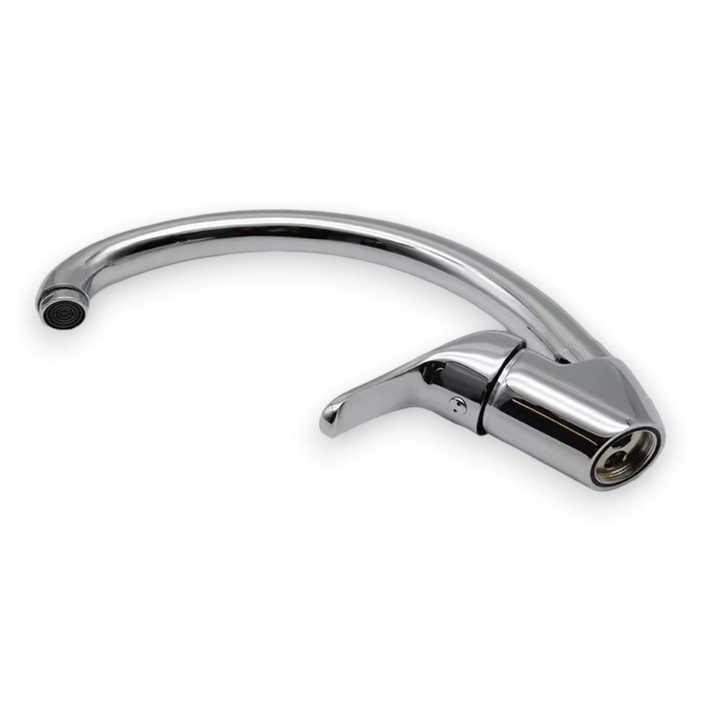 Rubinetto singolo per lavello con snodo cromato a parete con canna orientabile a form...