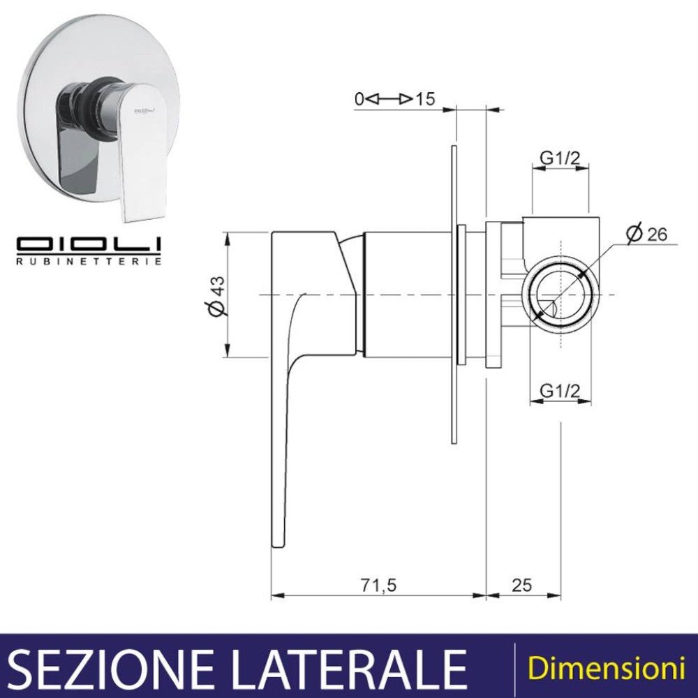 Miscelatore monocomando in ottone cromato a incasso doccia