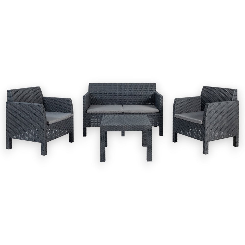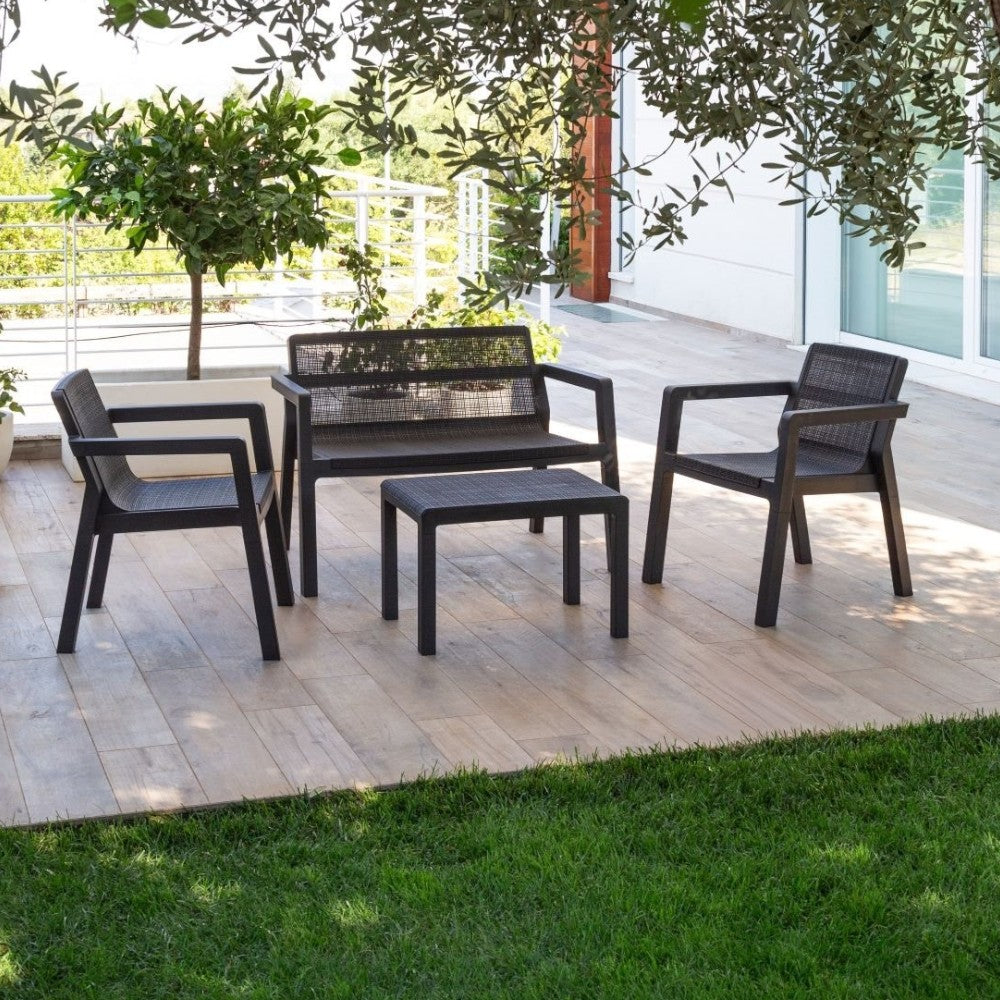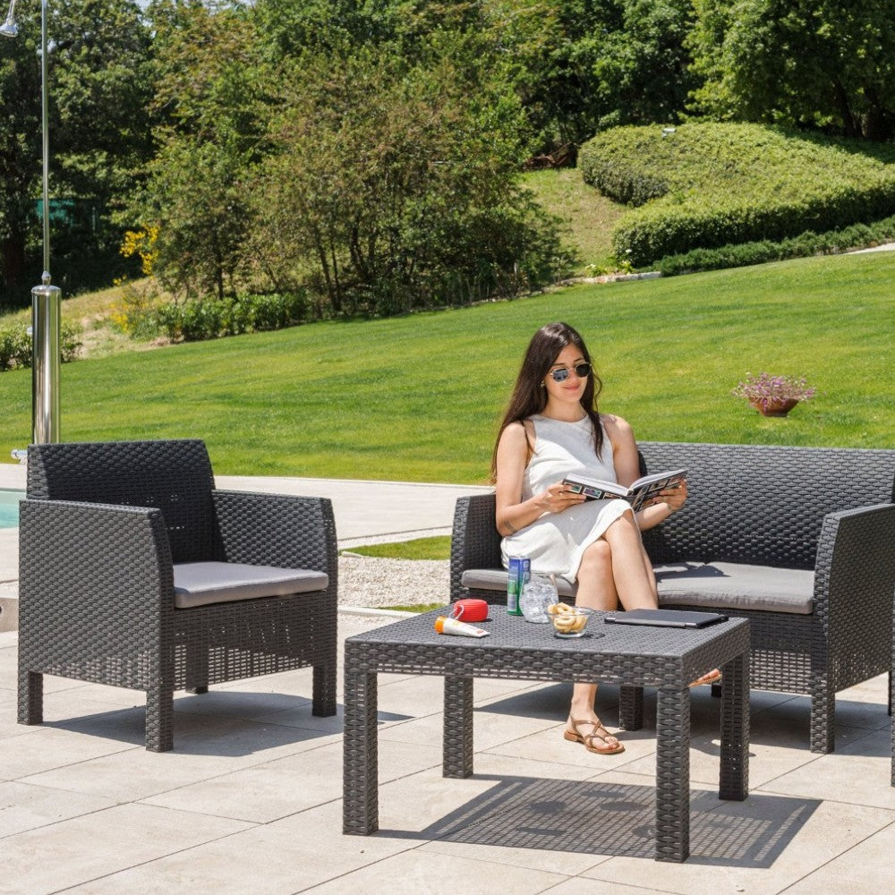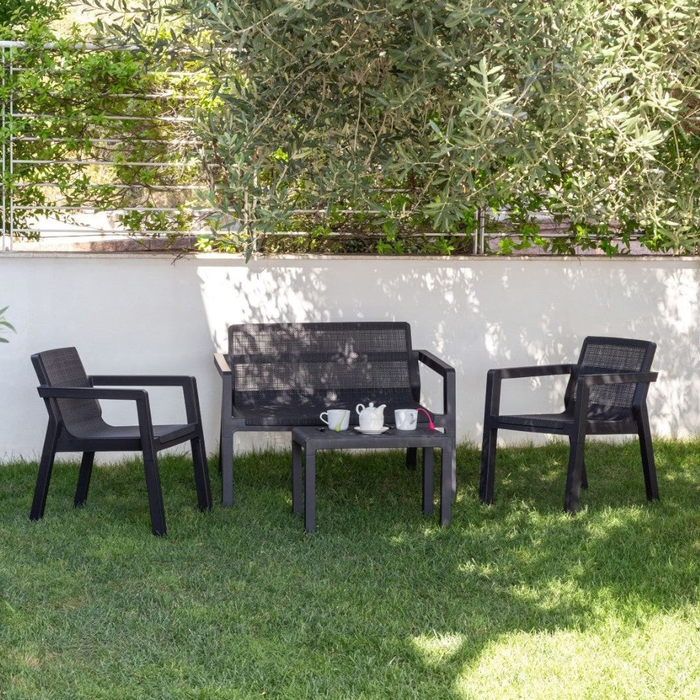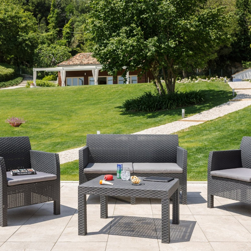 Salotto da esterno 4 posti con struttura in alluminio e tavolo effetto doghe Aiace