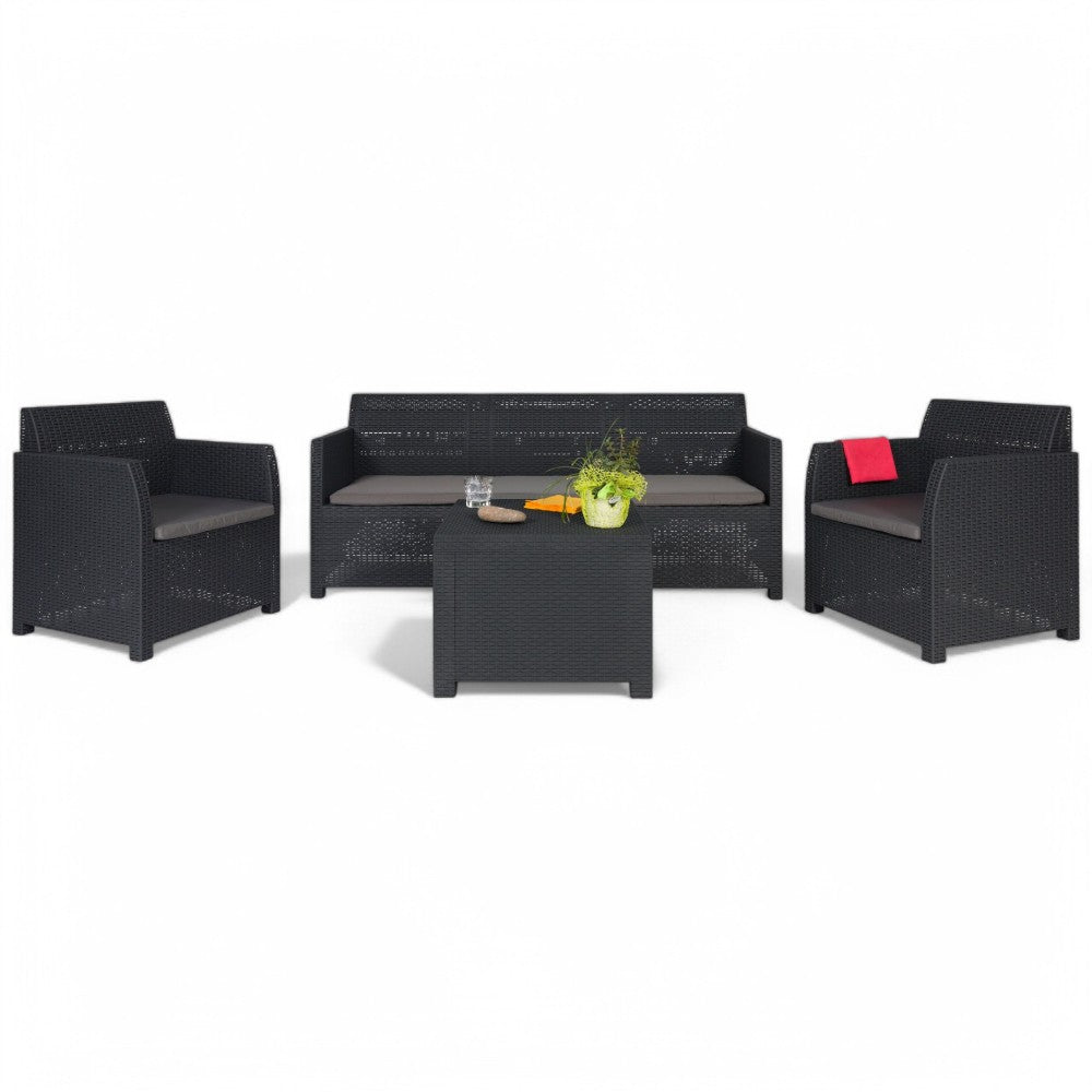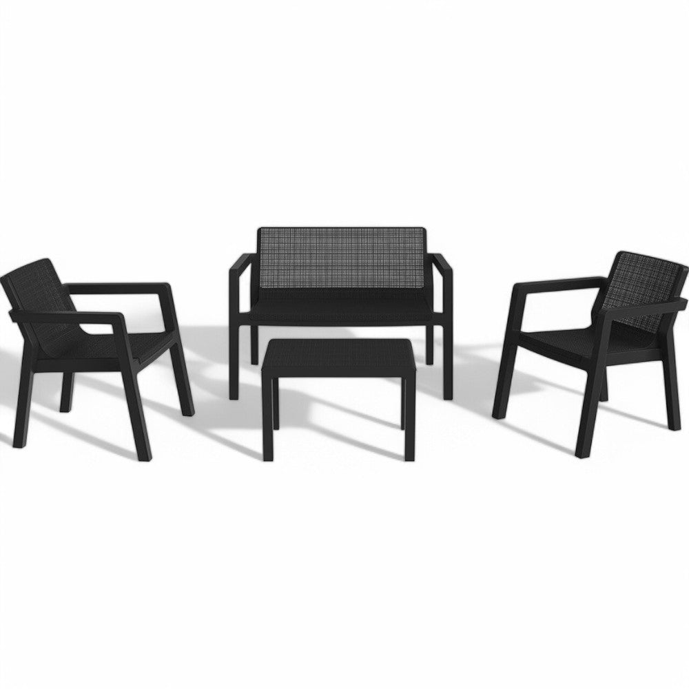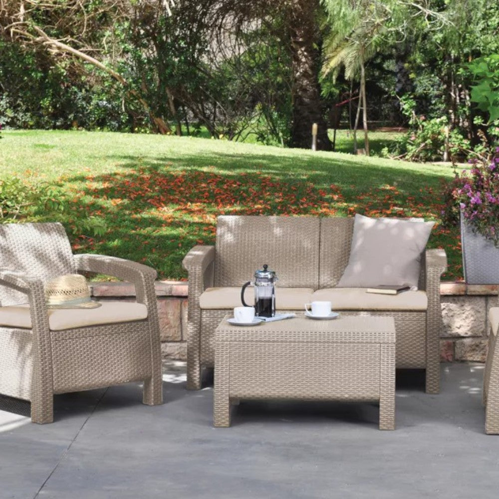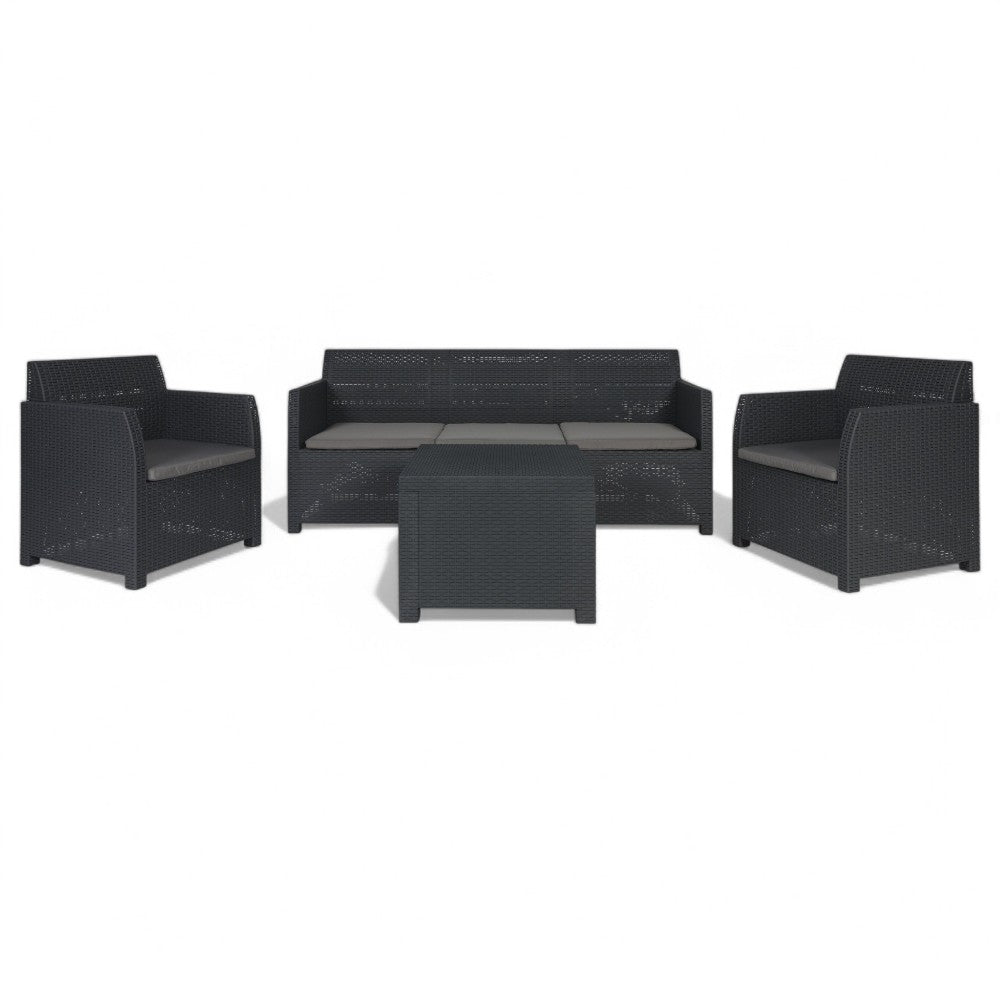 Salotto da esterno 4 posti con struttura in alluminio e tavolo effetto doghe Aiace