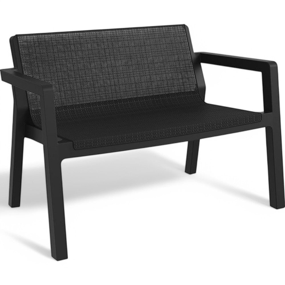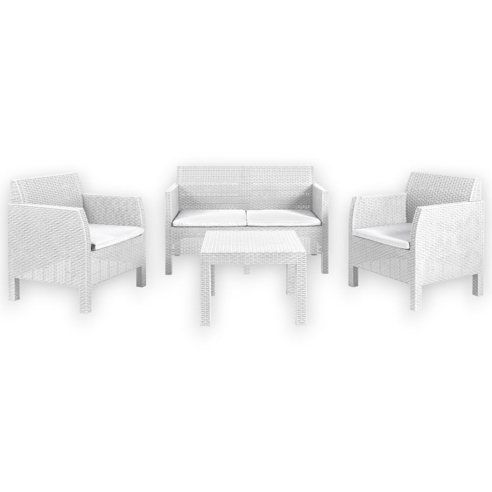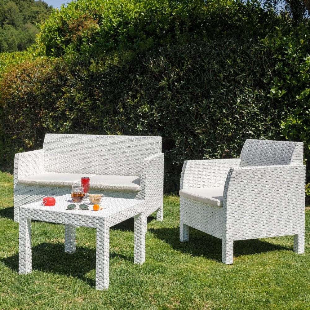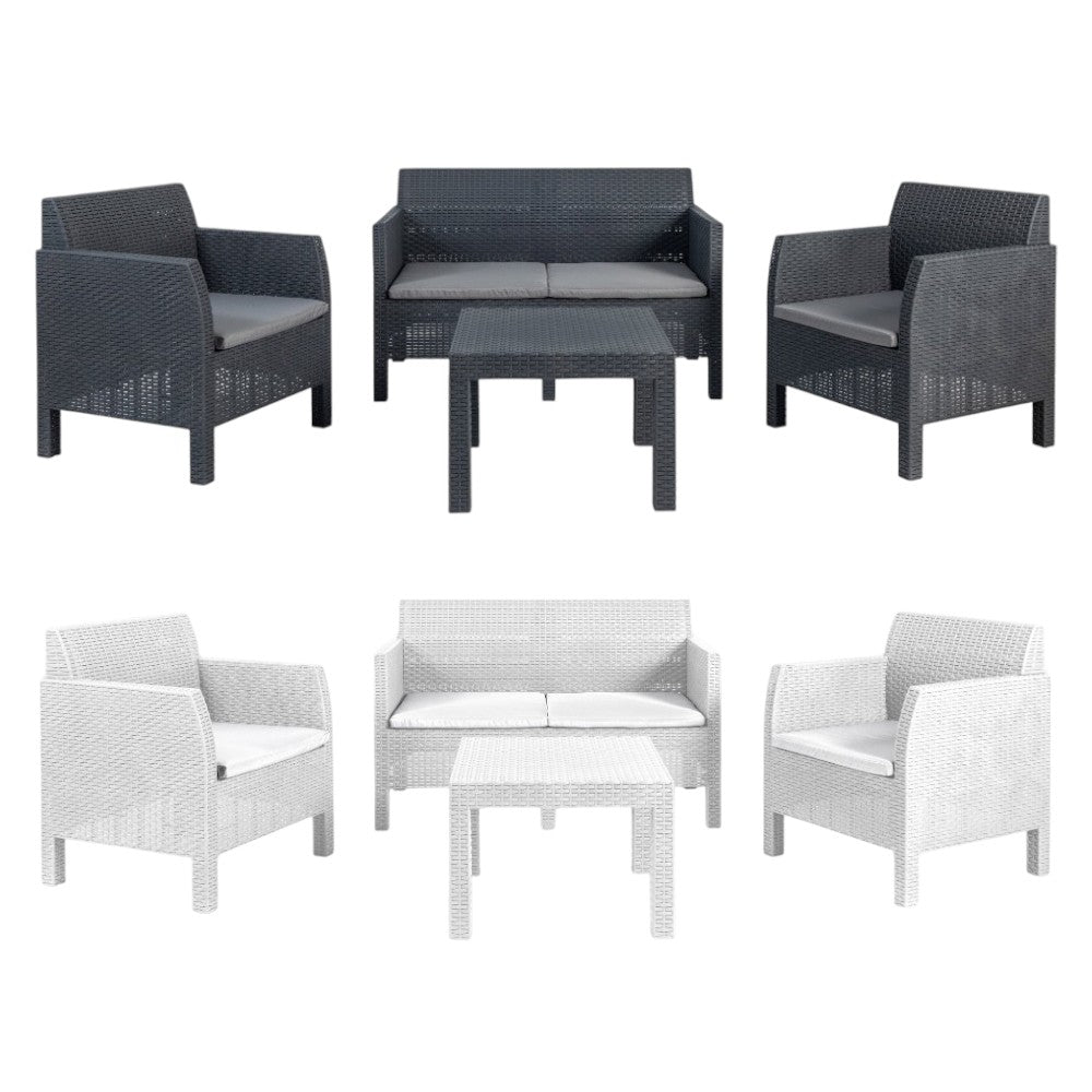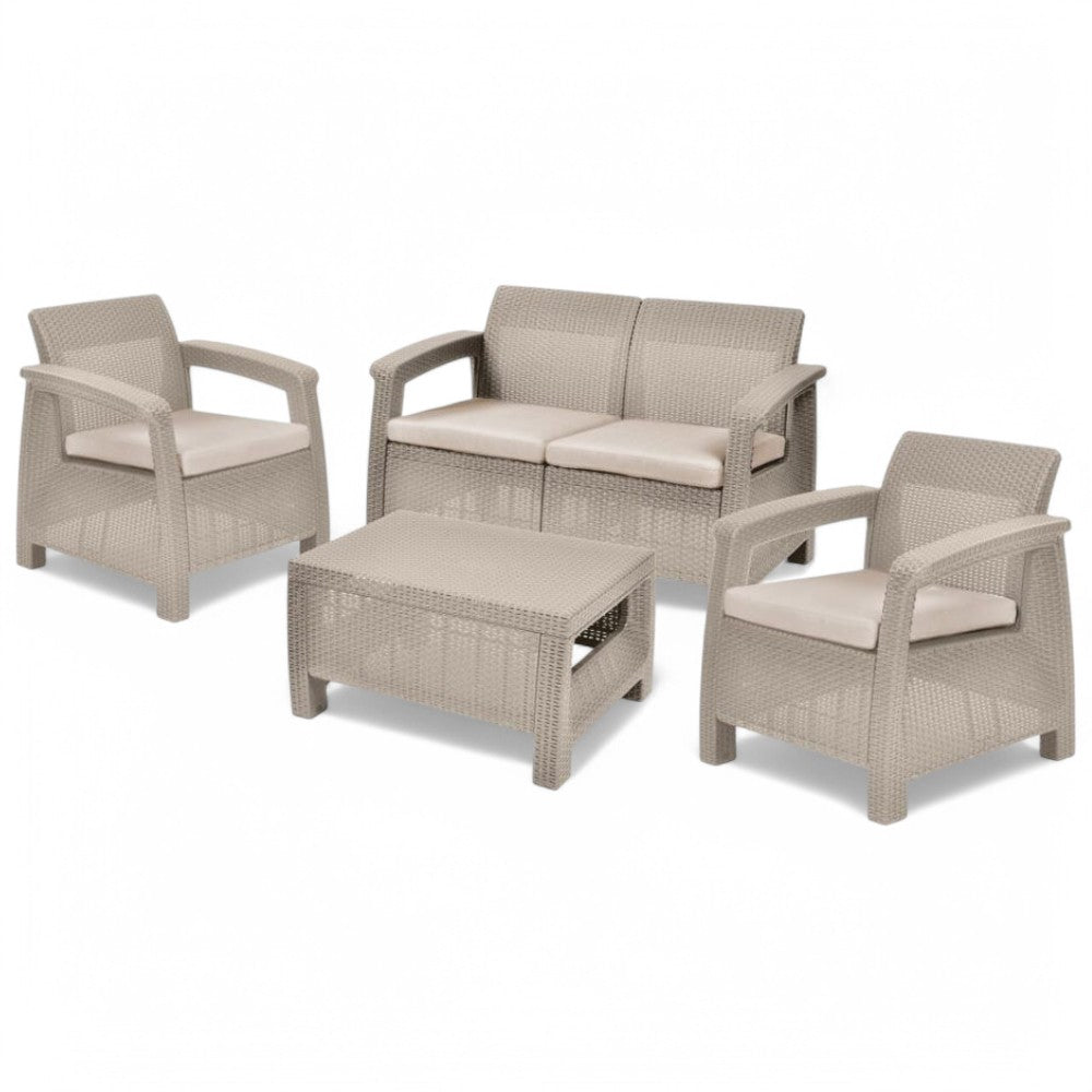Salotto da esterno 4 posti con struttura in alluminio e tavolo effetto doghe Aiace