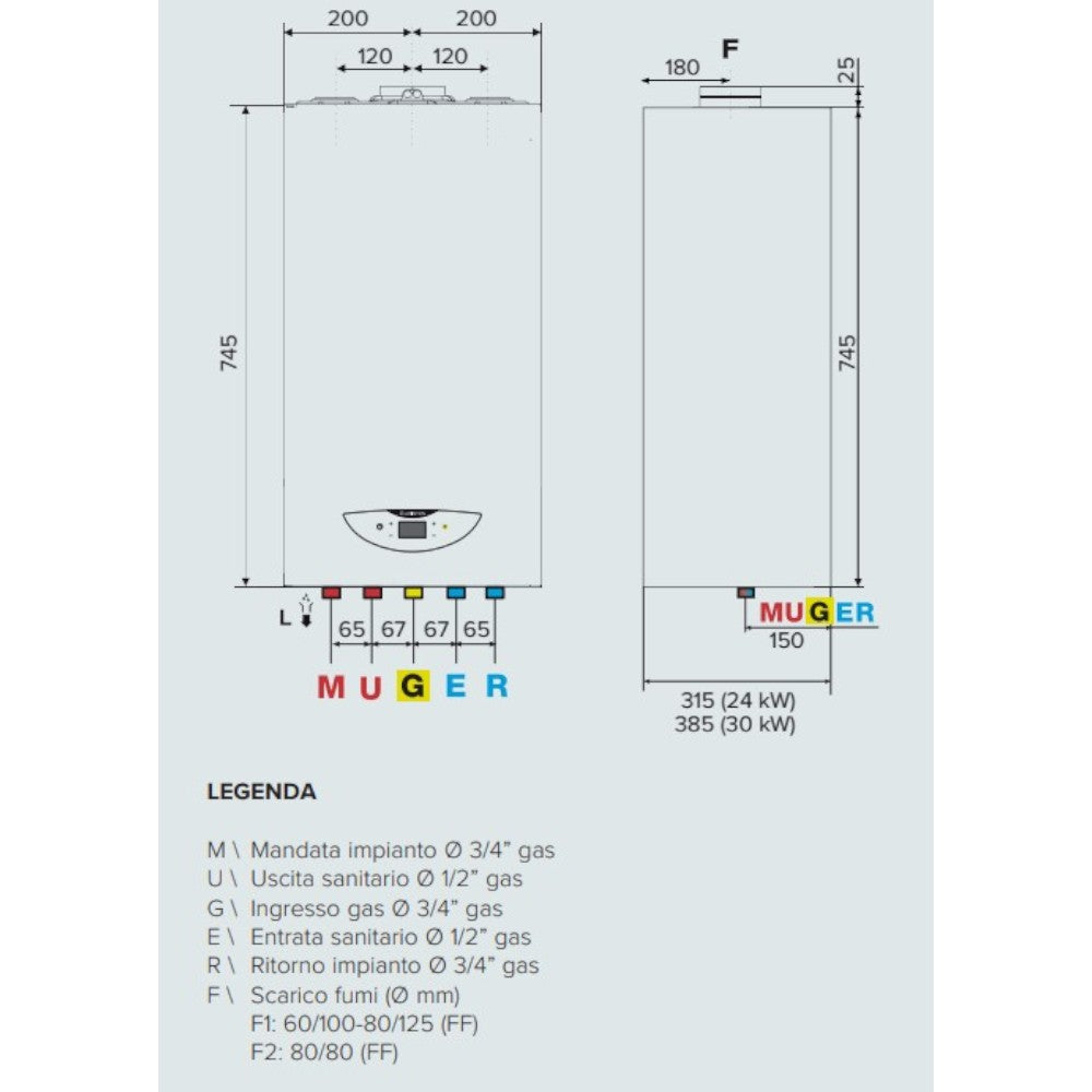 Caldaia murale a condensazione A con scambiatore primario in acciaio inox mono circui...