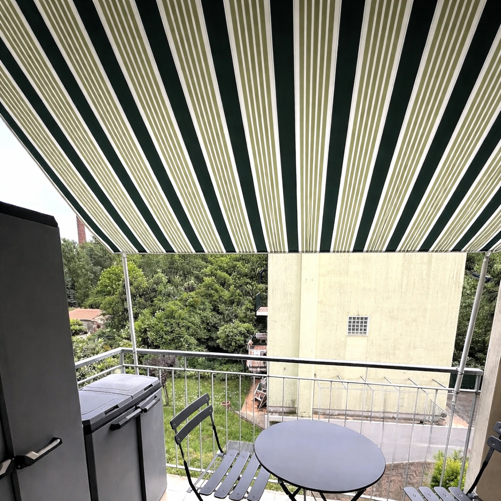 Tenda da balcone para sole a caduta senza cassone 400x300 cm verde e bianco a righe c...