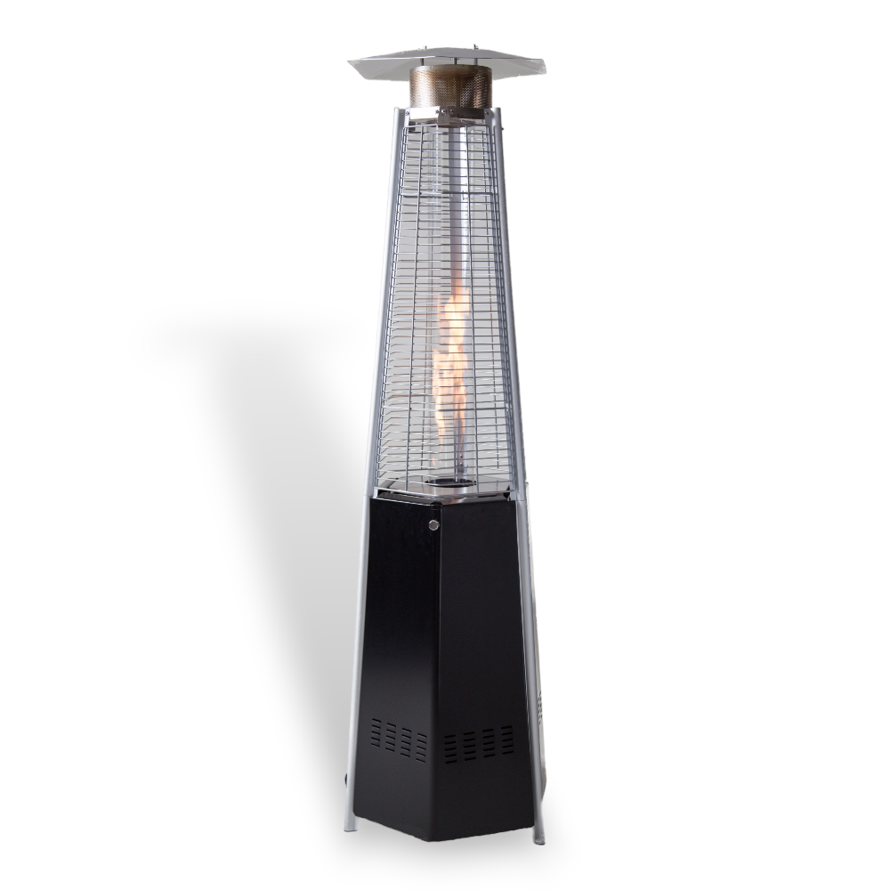 Termopatio stufa piramide a gas da esterno con struttura in acciaio e ruote integrate...