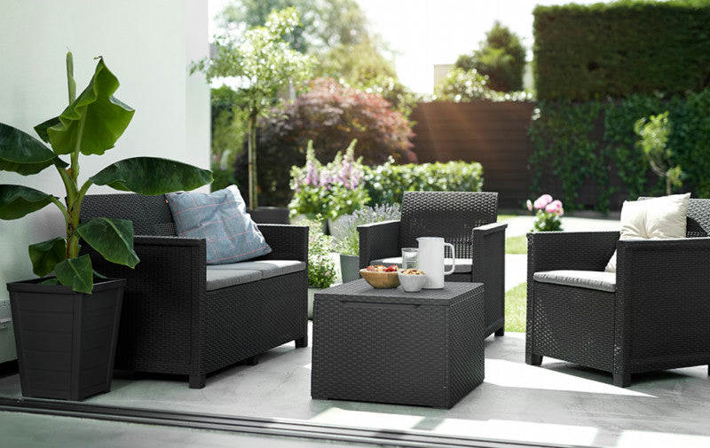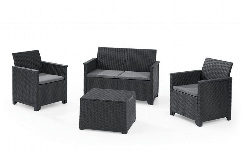 Set Salottino Multifunzione Sedie e Tavolini Contenitore Impilabile Uniqubo 2+1 IKU BS Prosperplast