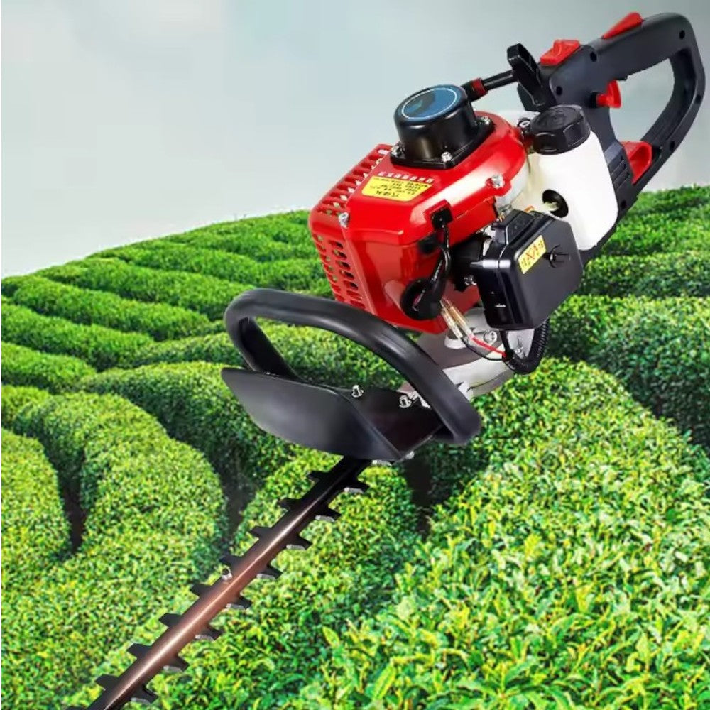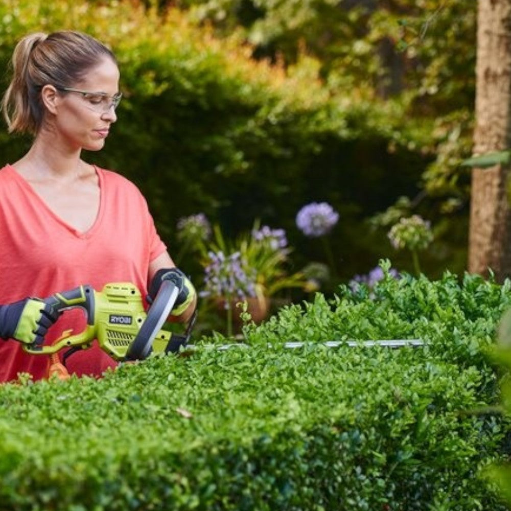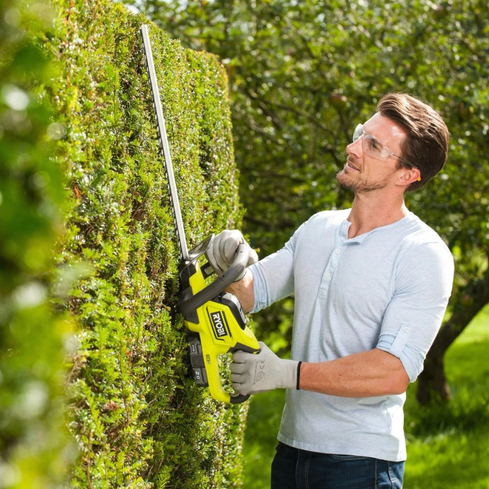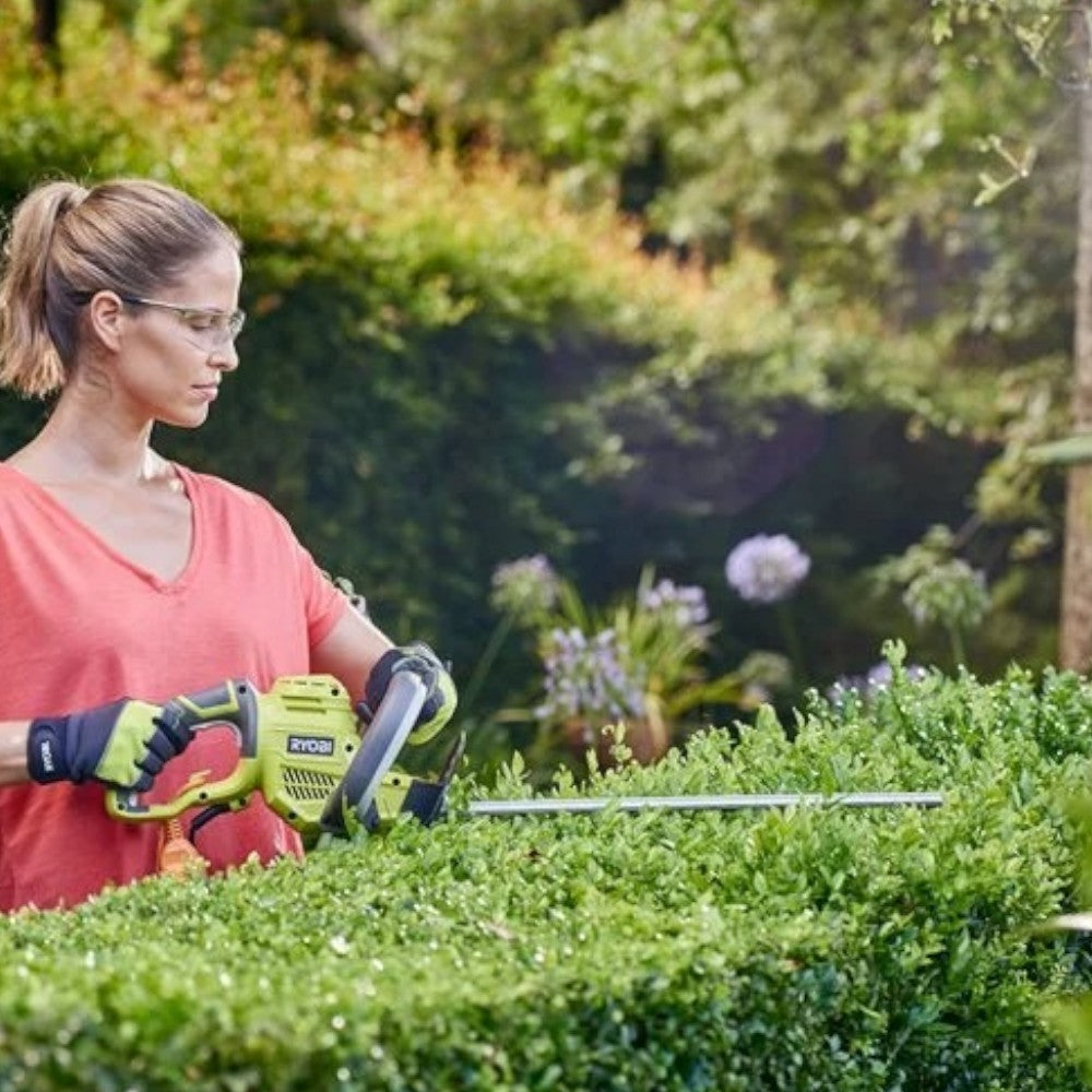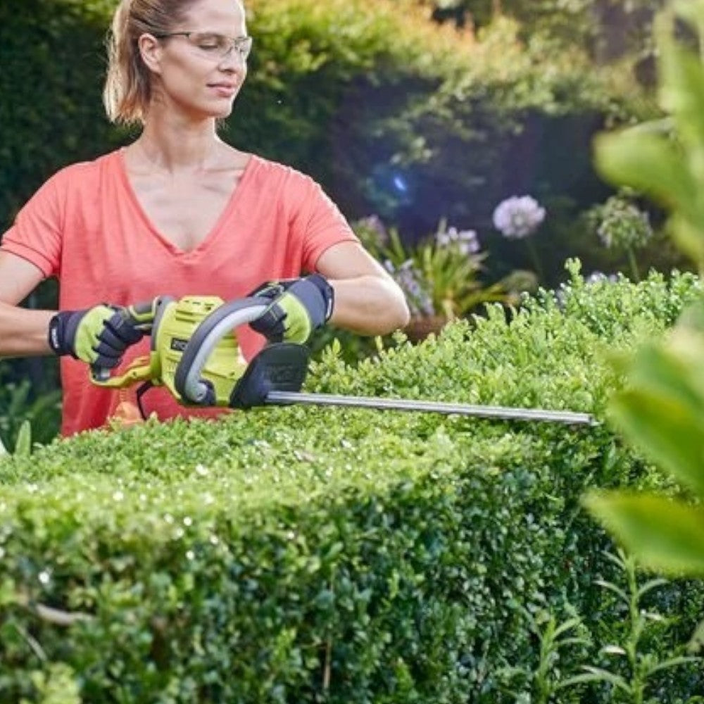 Un apposito sistema protegge la punta delle lame durante le sessioni di lavoro in prossimità di muri, marciapiedi e altre superfici dure, mentre l’interruttore di sicurezza attivabile con entrambe le mani previene l'accensione involontaria del tagliasiepi.