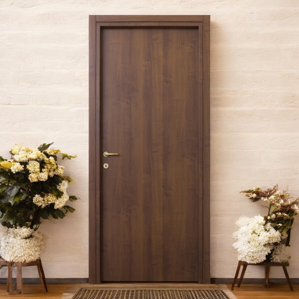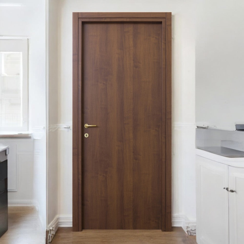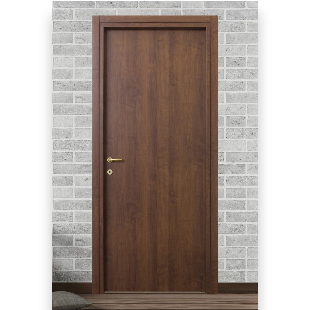 Porta battente reversibile noce nazionale in legno di abete con rinforzi marrone