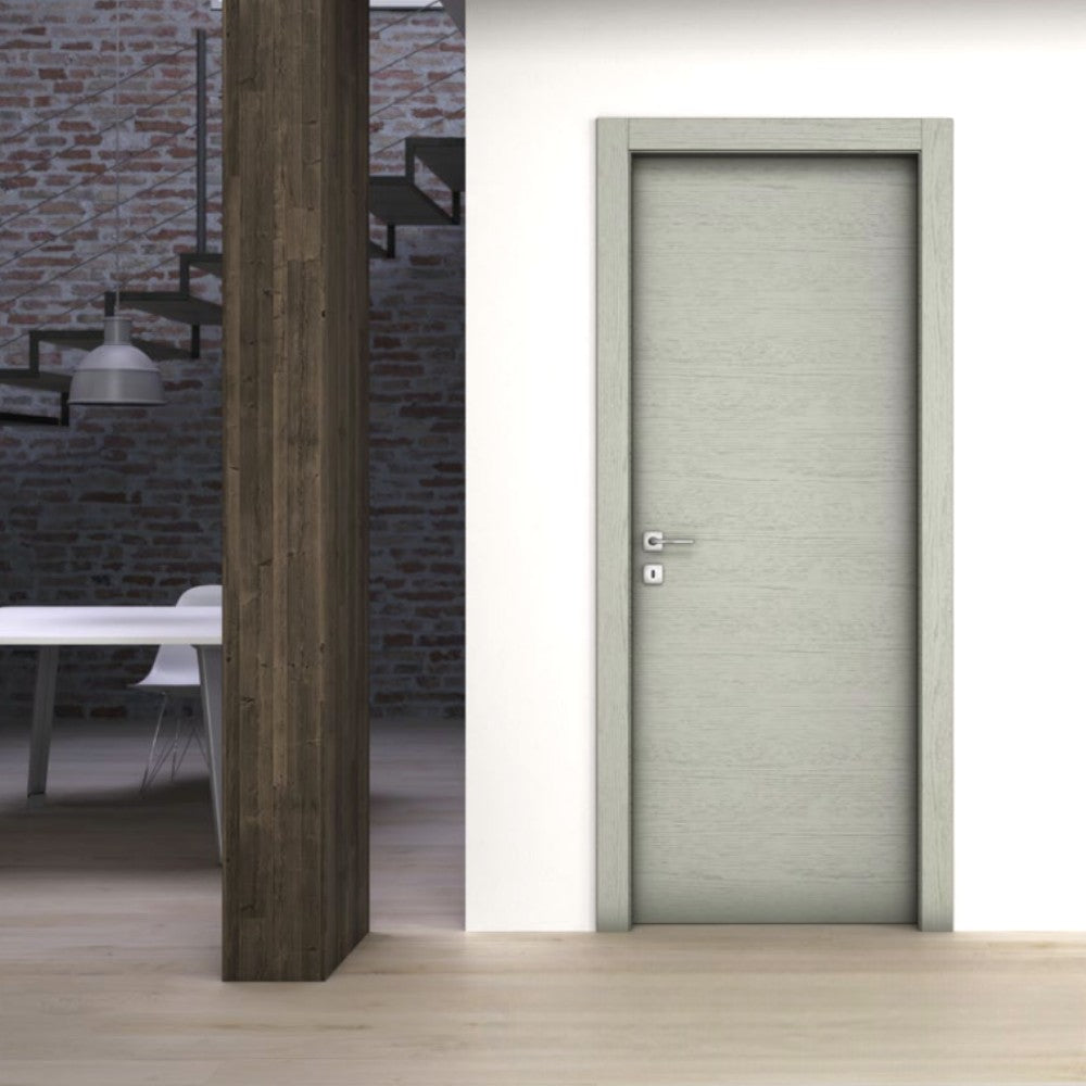 Porta battente reversibile moderna da interno completa in legno di abete grigio con v...