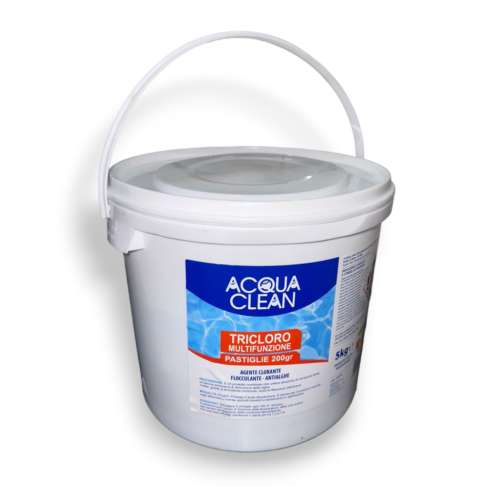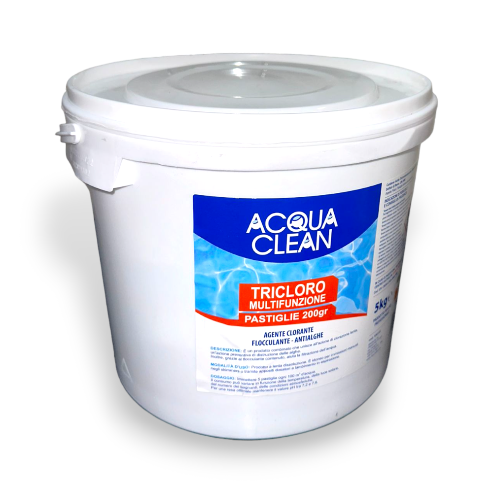 Cloro tricloro multifunzione in pastiglie 200g per piscine Acqua Clean