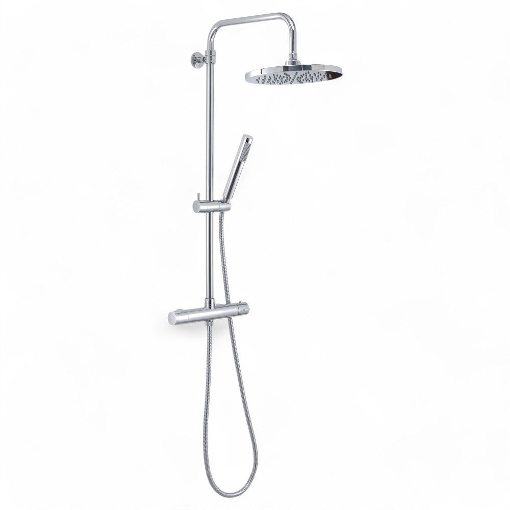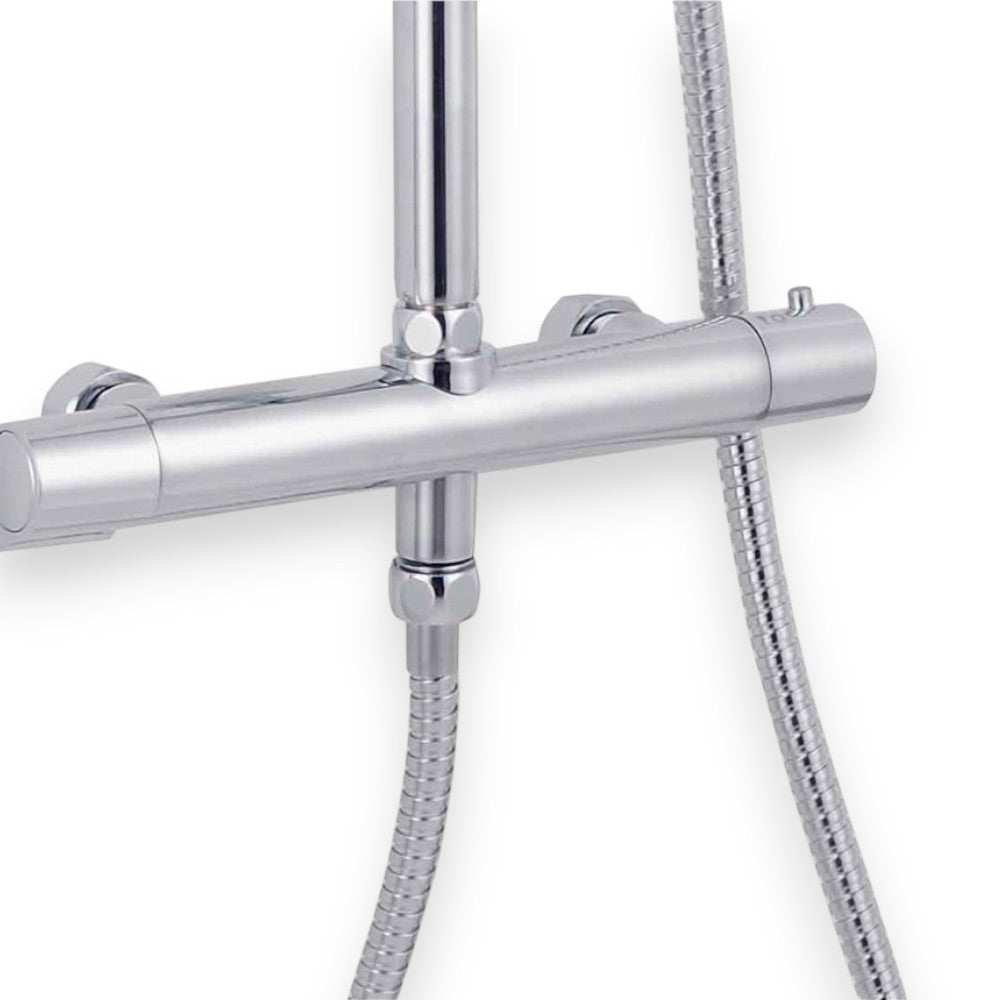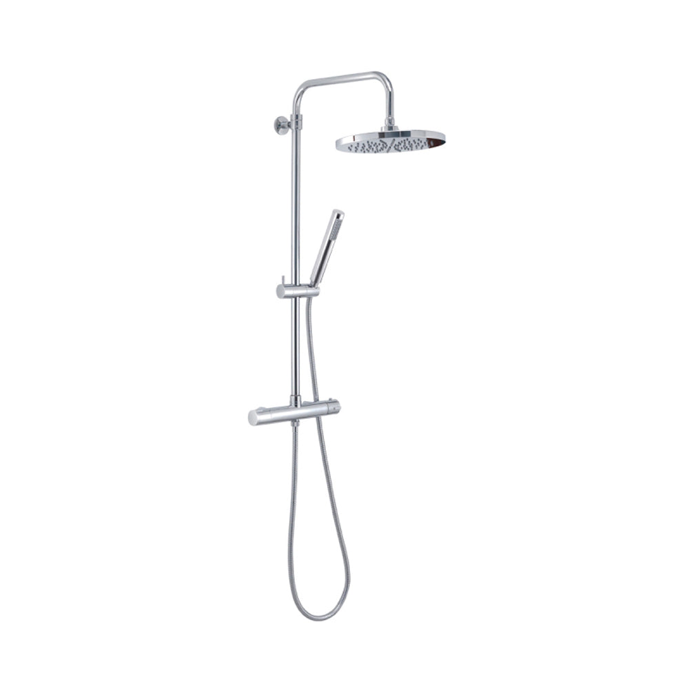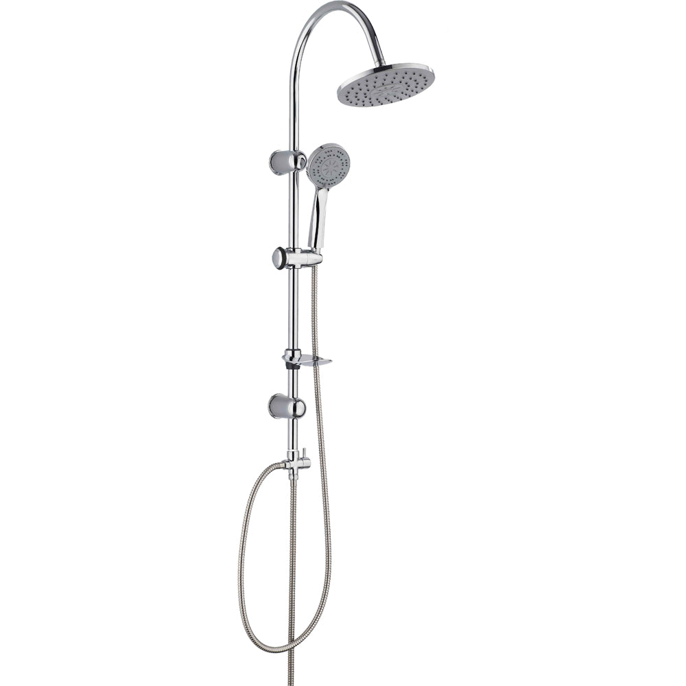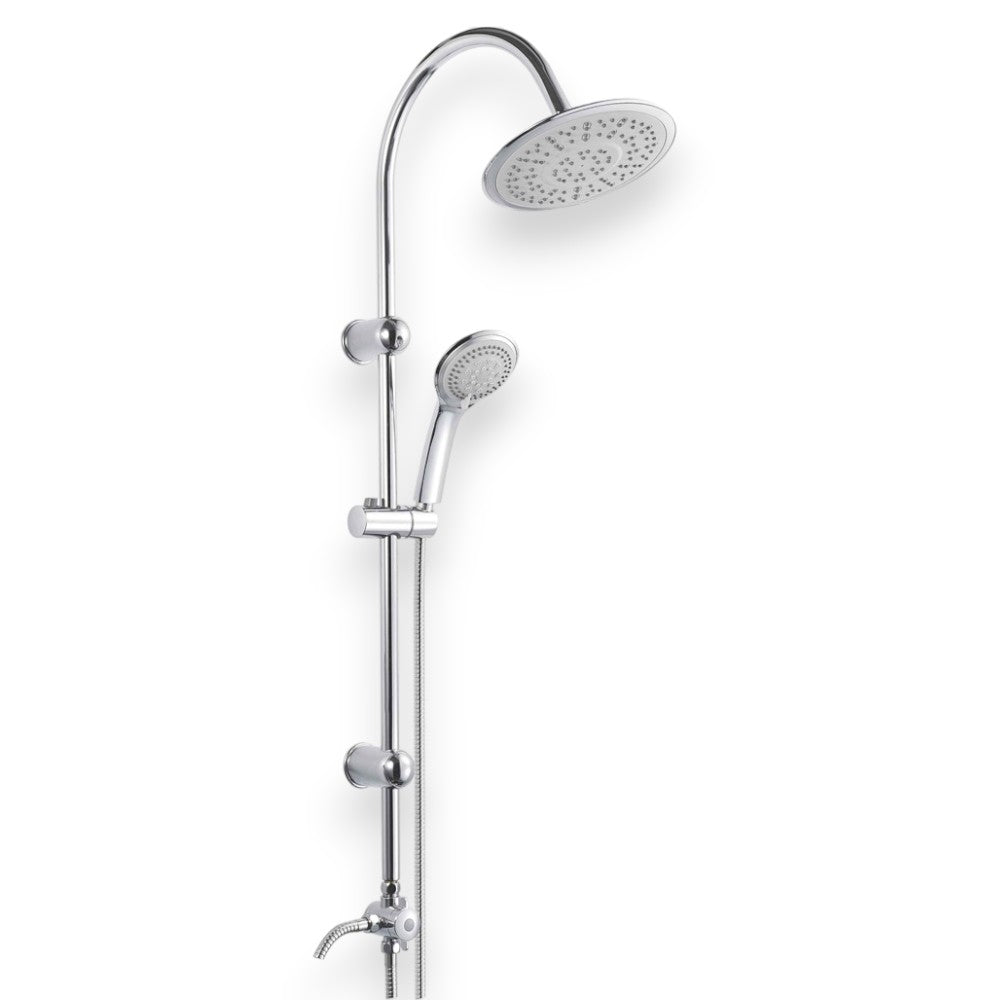 Colonna doccia cromata con soffione tondo 20 cm e doccetta con riduttore 10 cm idealduo