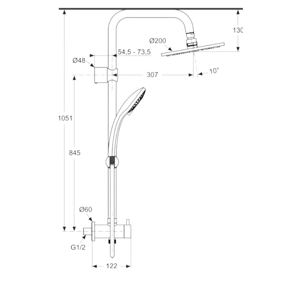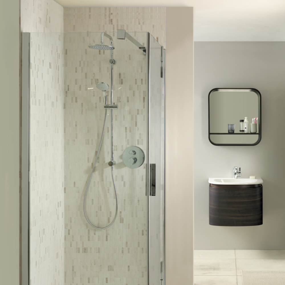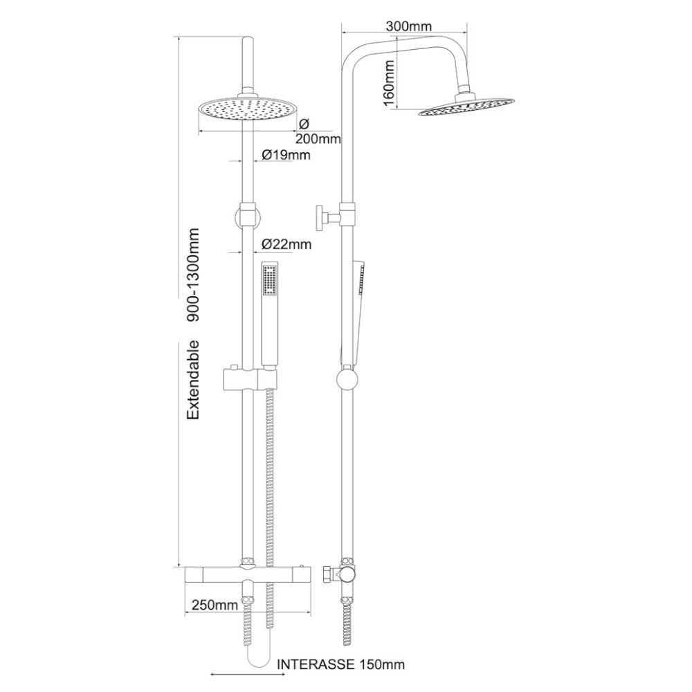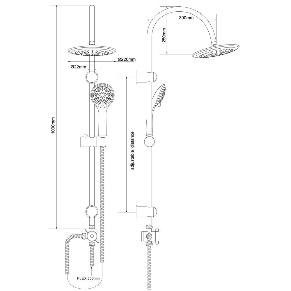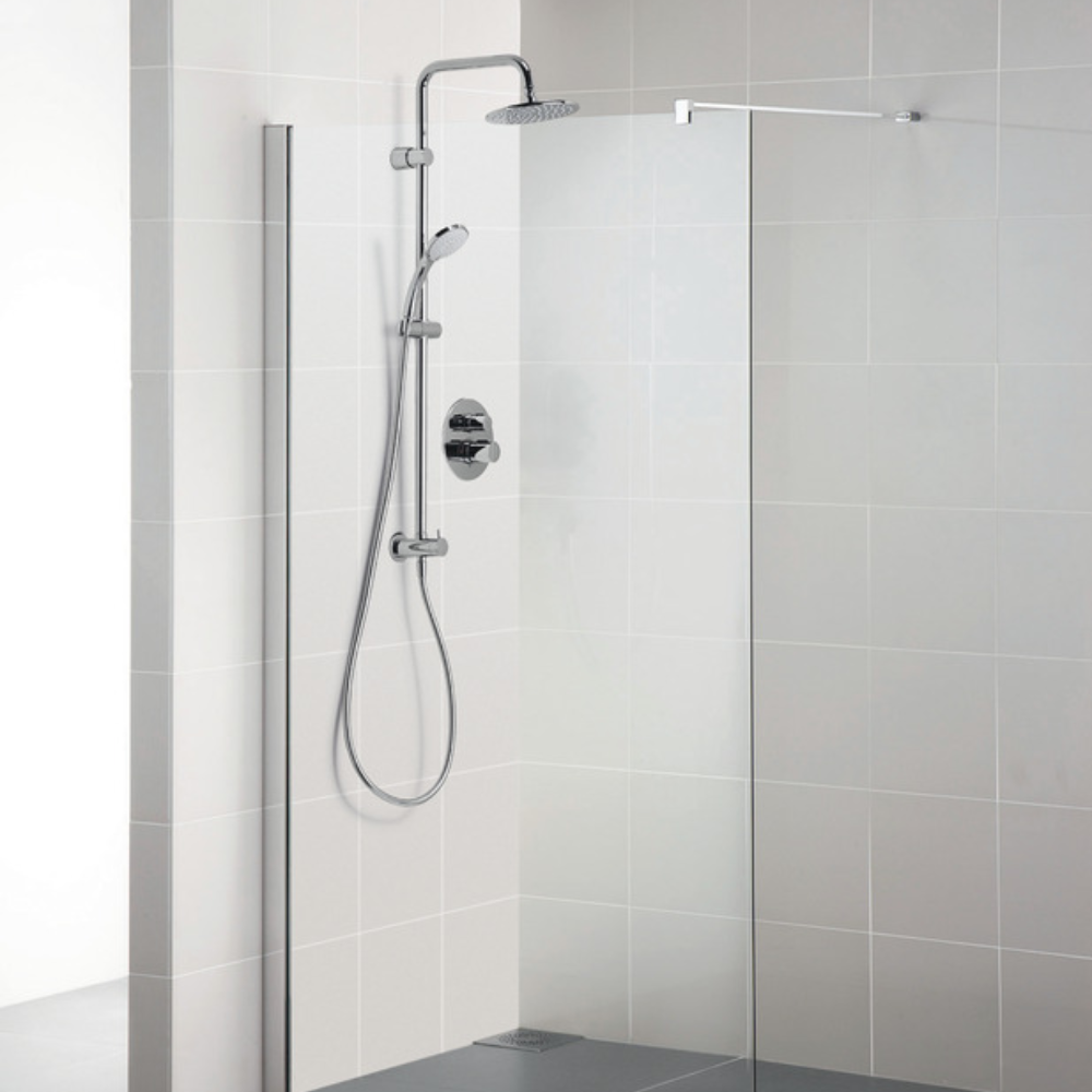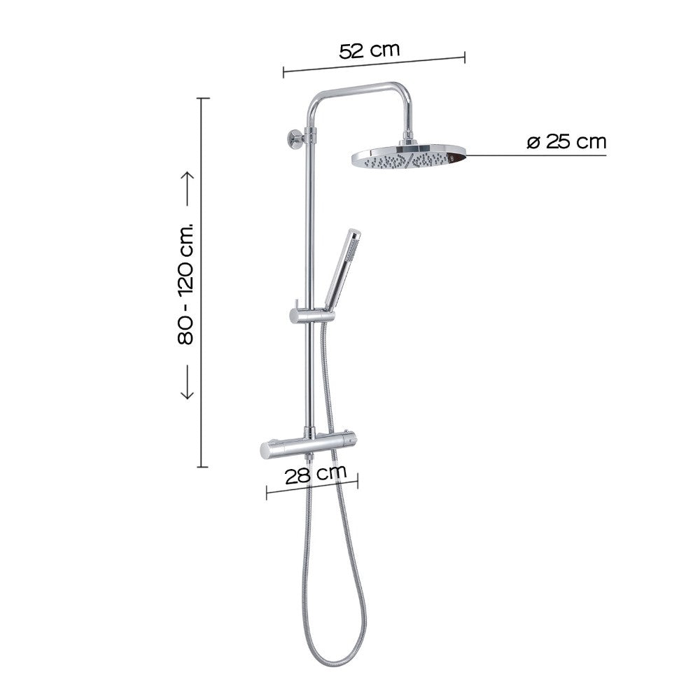 Colonna doccia cromata con soffione tondo 20 cm e doccetta con riduttore 10 cm idealduo
