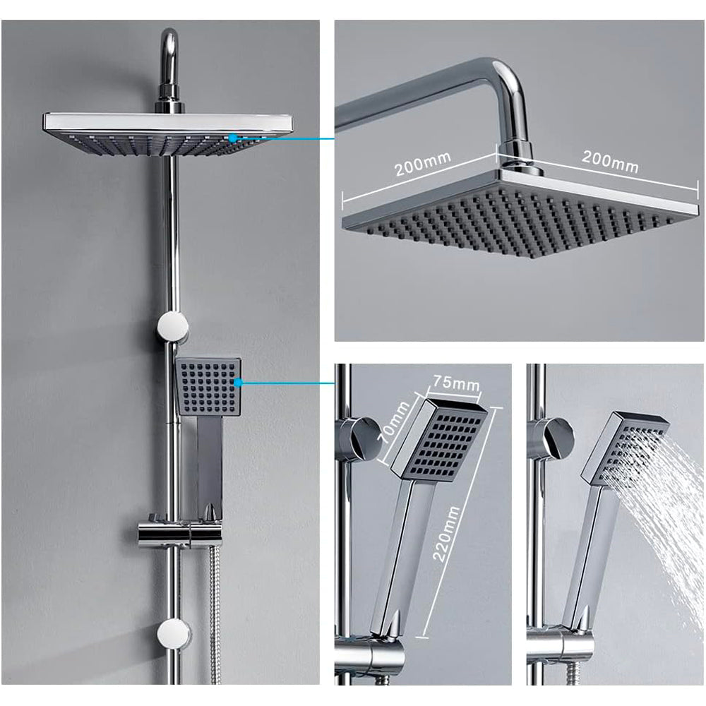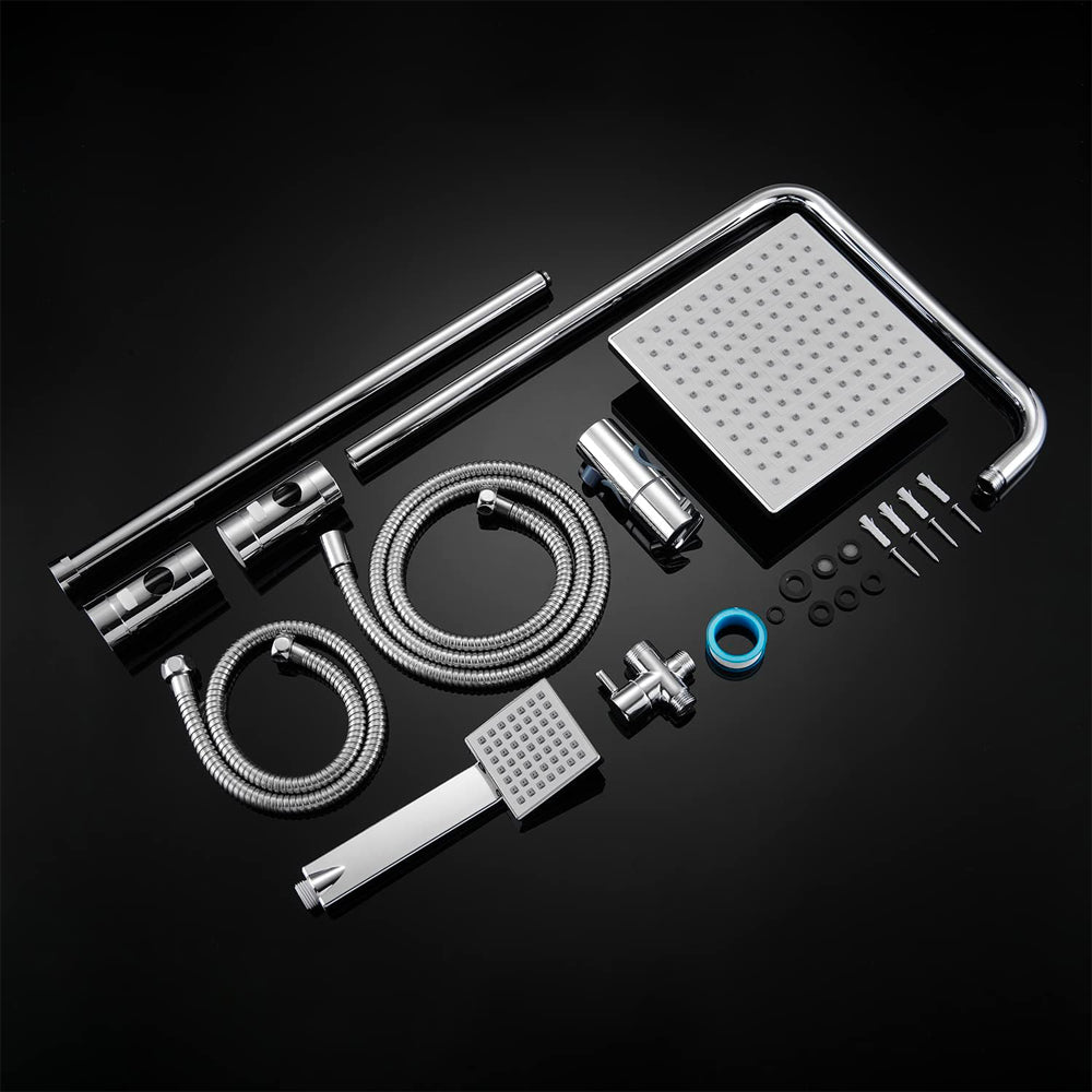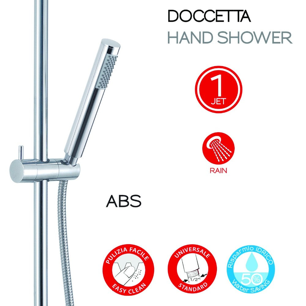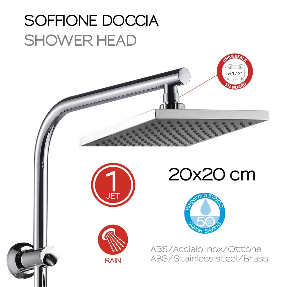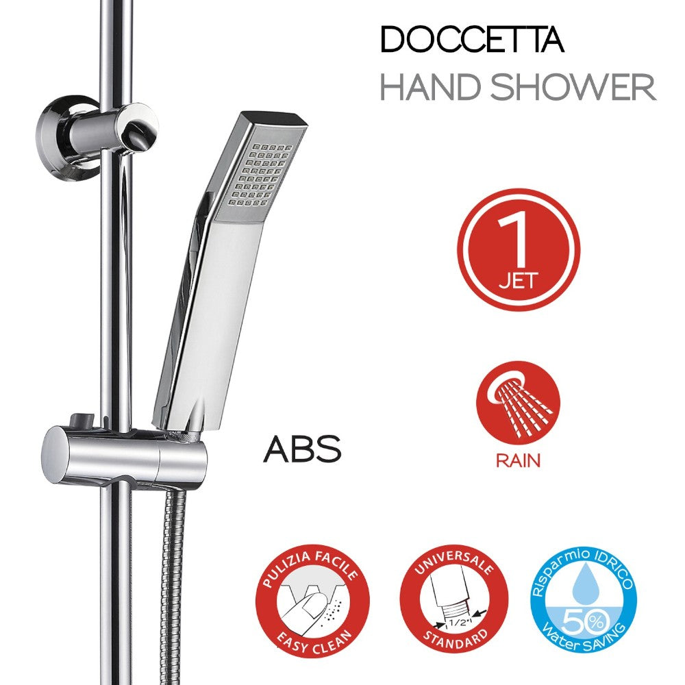 Set colonna doccia quadra cromata con doccetta e soffione in abs 1 Getto