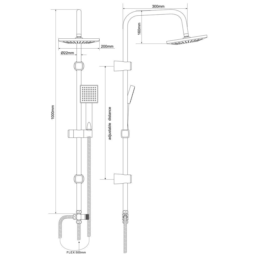 Set colonna doccia regolabile in acciaio 20x45x100 cm con soffione e doccetta 1 getto