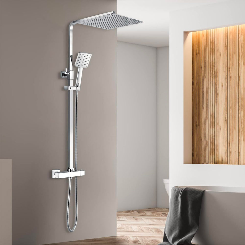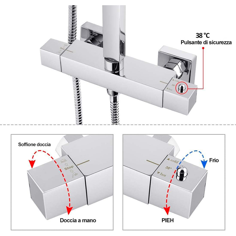 Set colonna doccia quadra con miscelatore termostatico soffione e doccetta in abs 1 g...