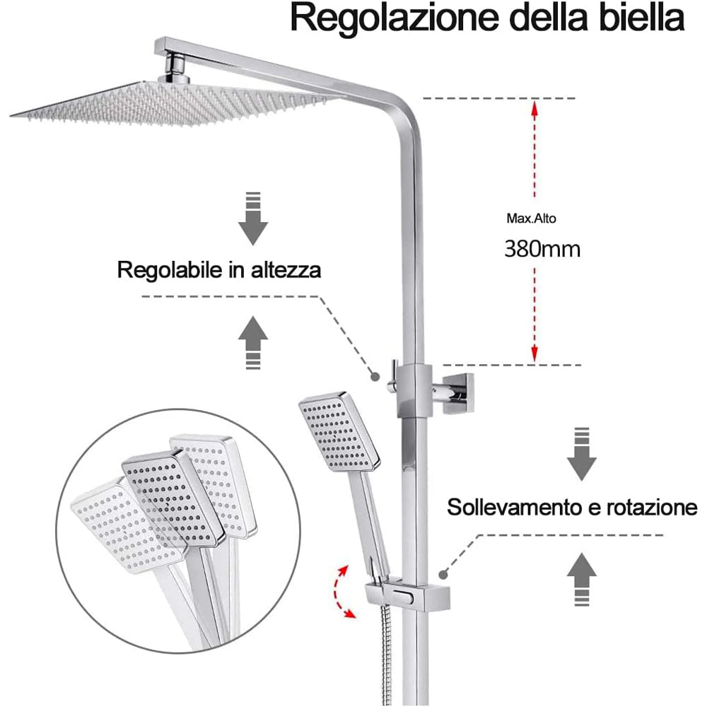 Set colonna doccia quadra cromo in acciaio inox con soffione doccetta 1 getto e misce...