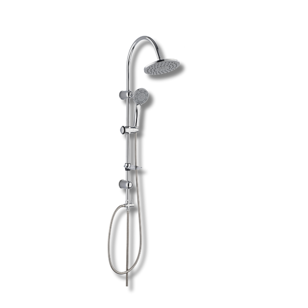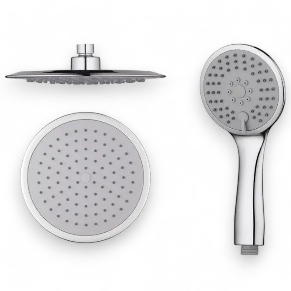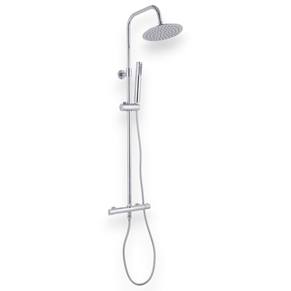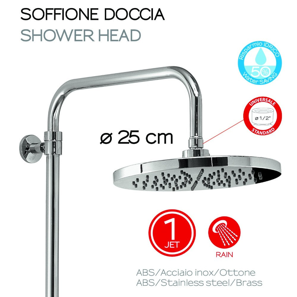 Set colonna doccia in acciaio tonda cromata con soffione mono getto e doccetta in ABS...
