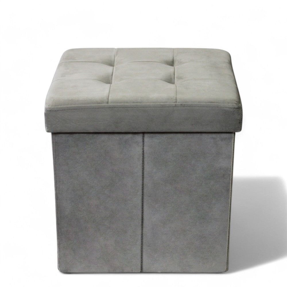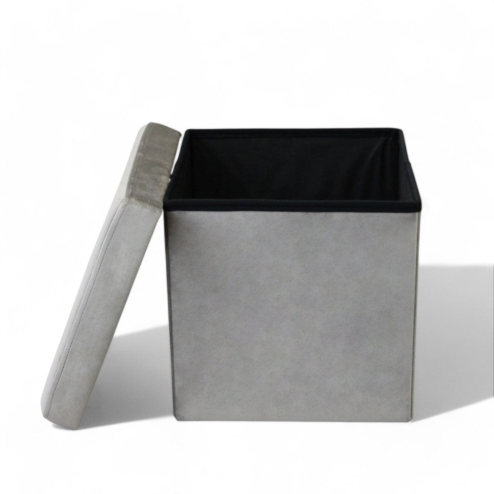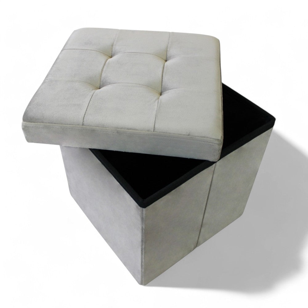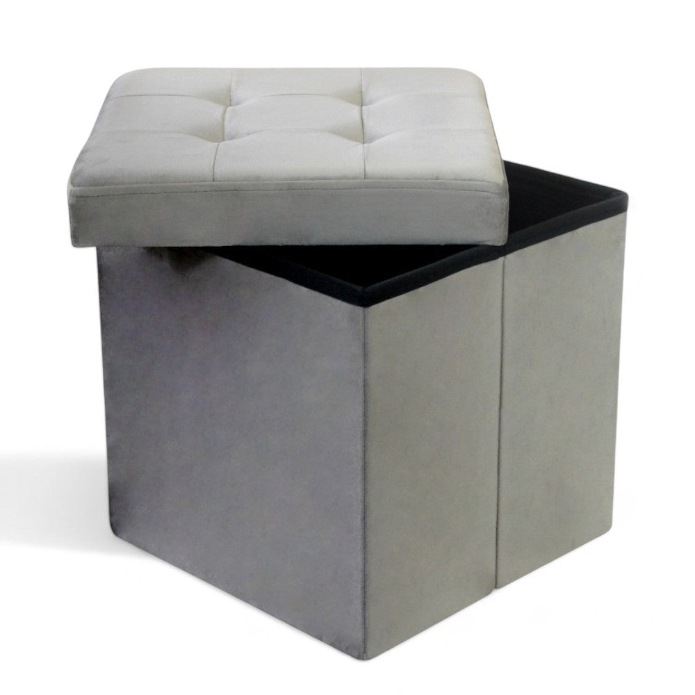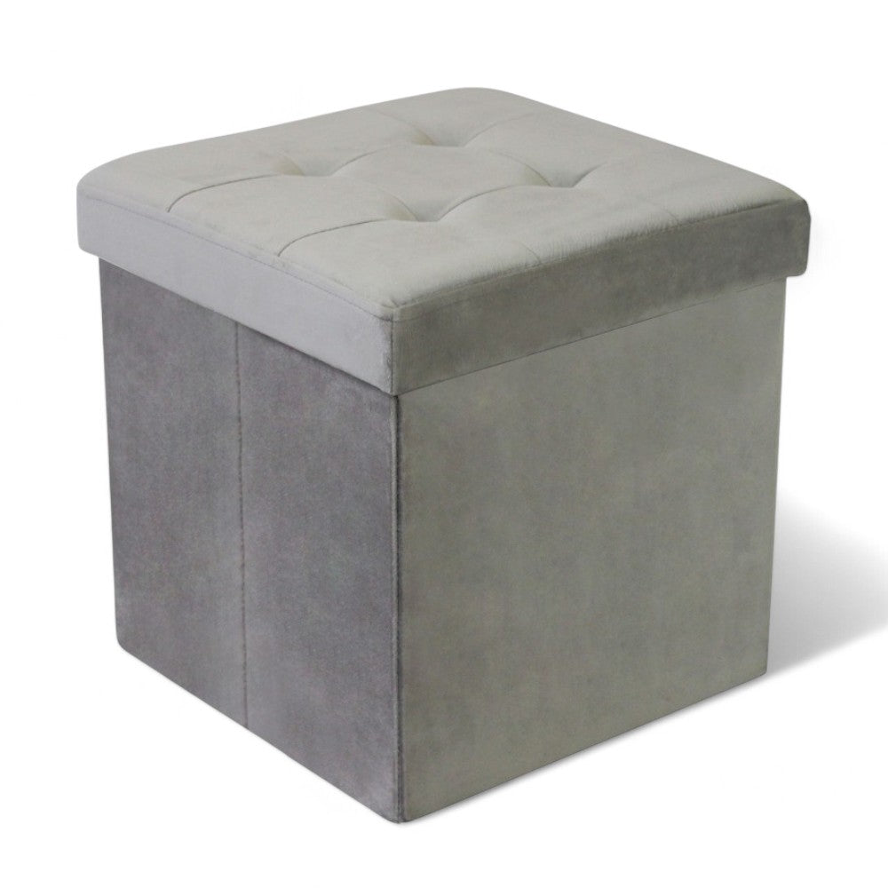 Pouf contenitore quadrato velluto tortora pratico elegante dimensioni compatte 38x38x...