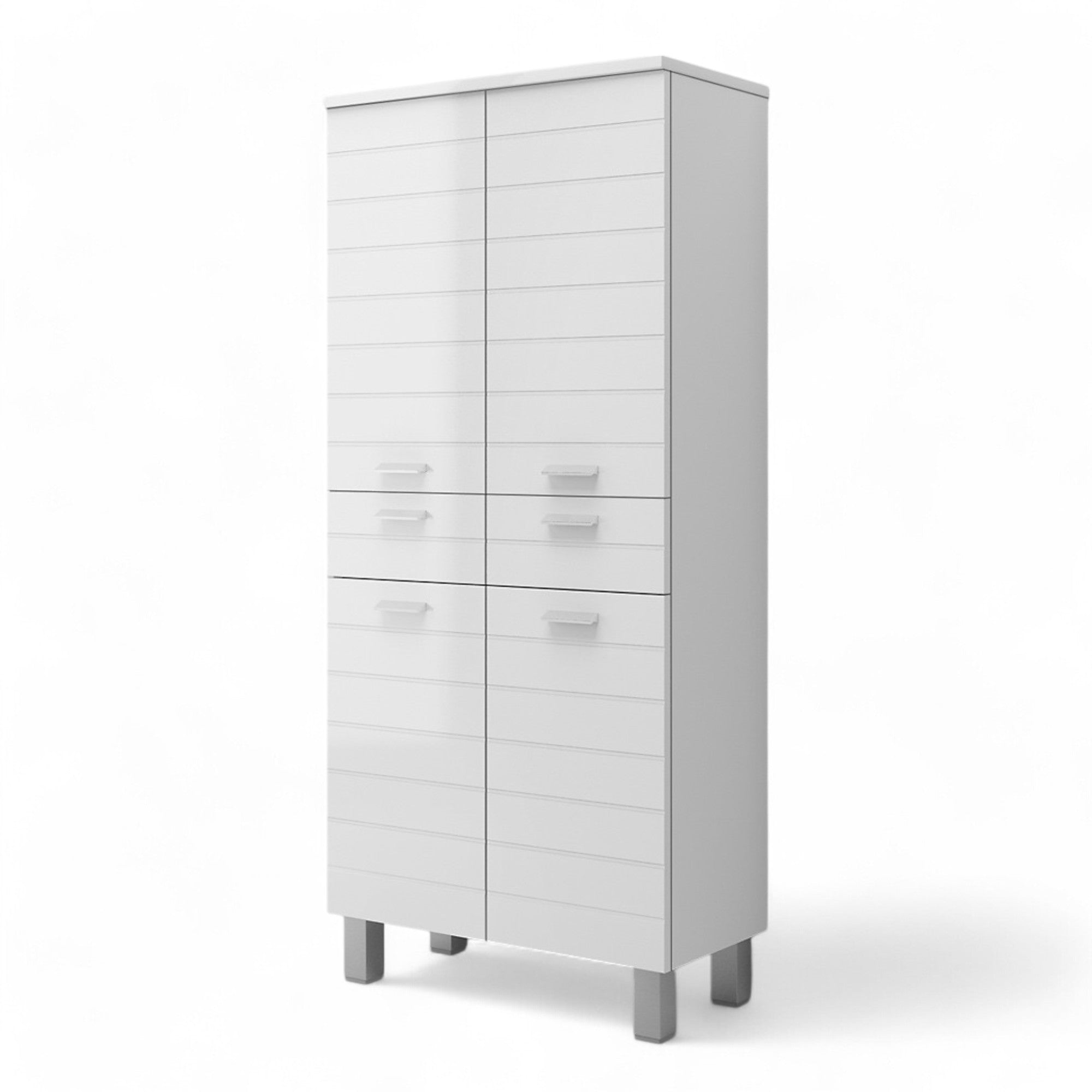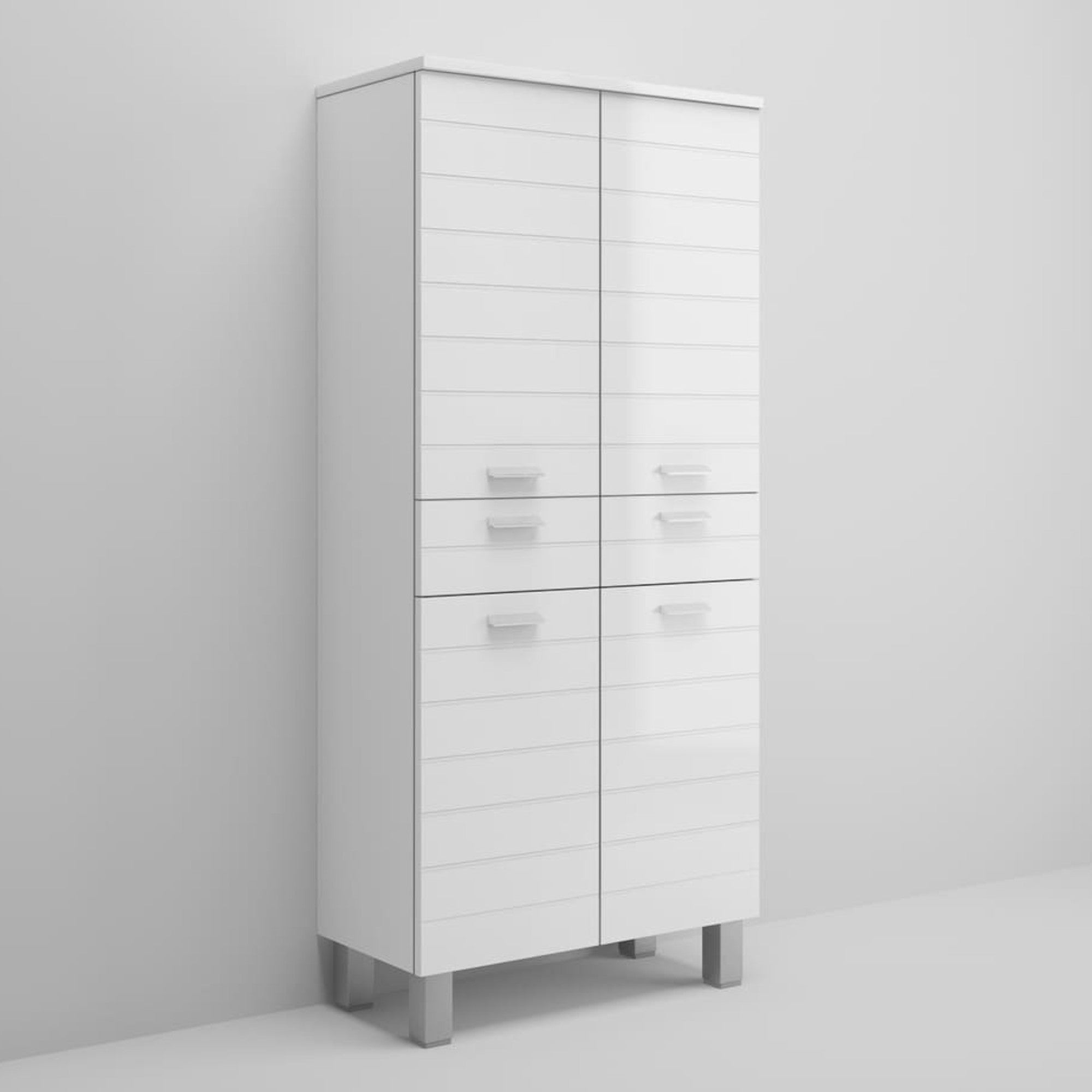 Mobile colonna armadietto da bagno in legno bianco laccato lucido con 4 ante e 2 cass...