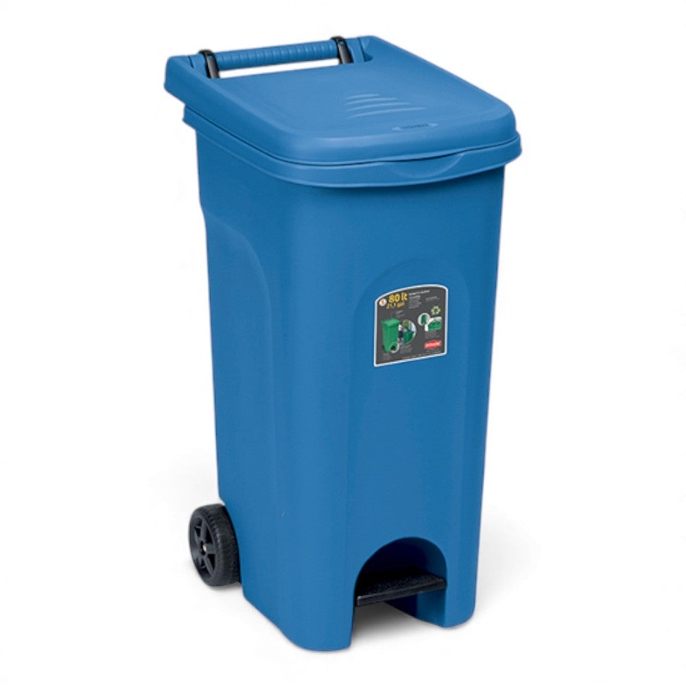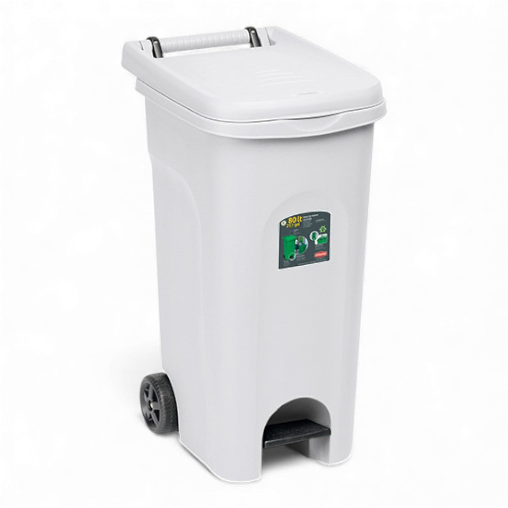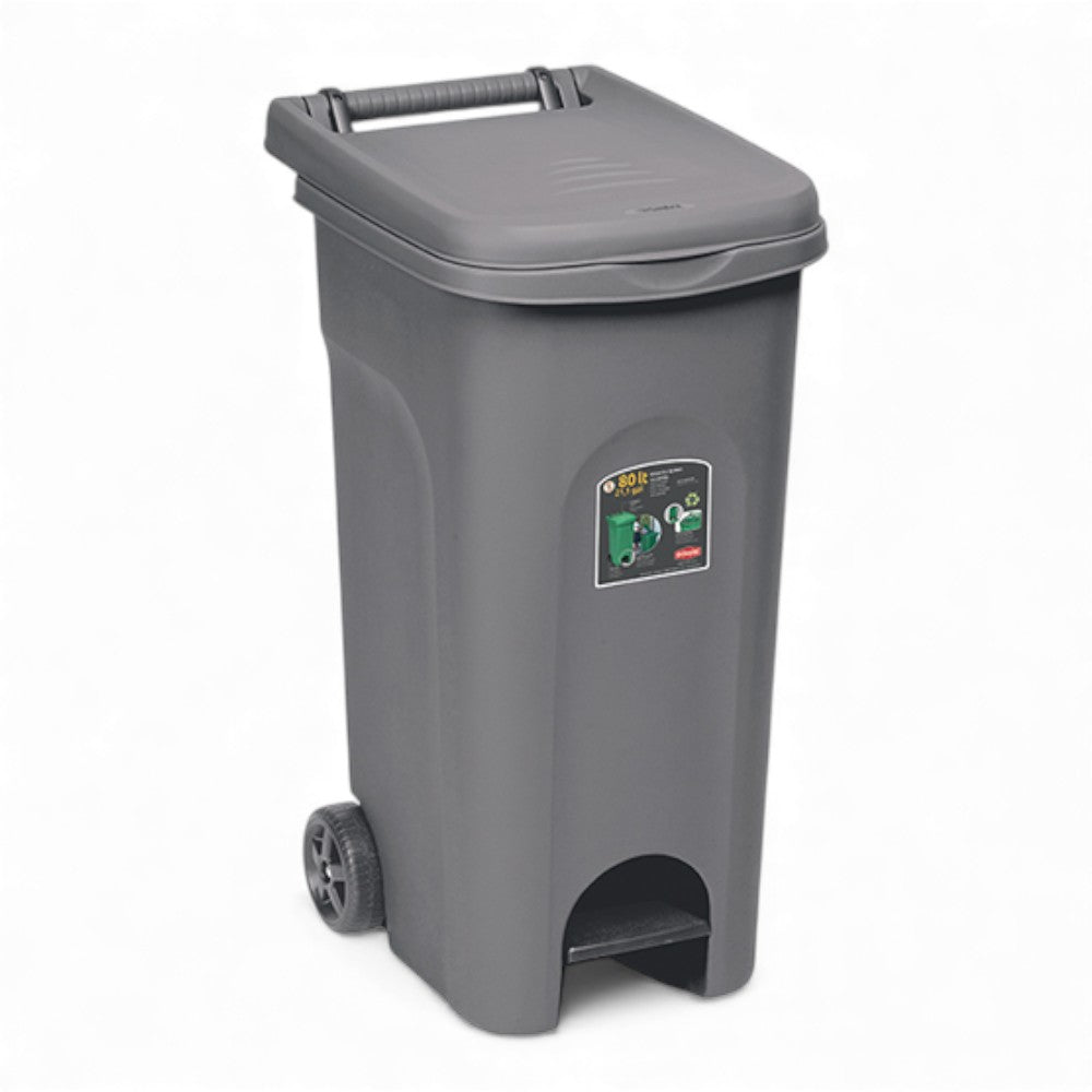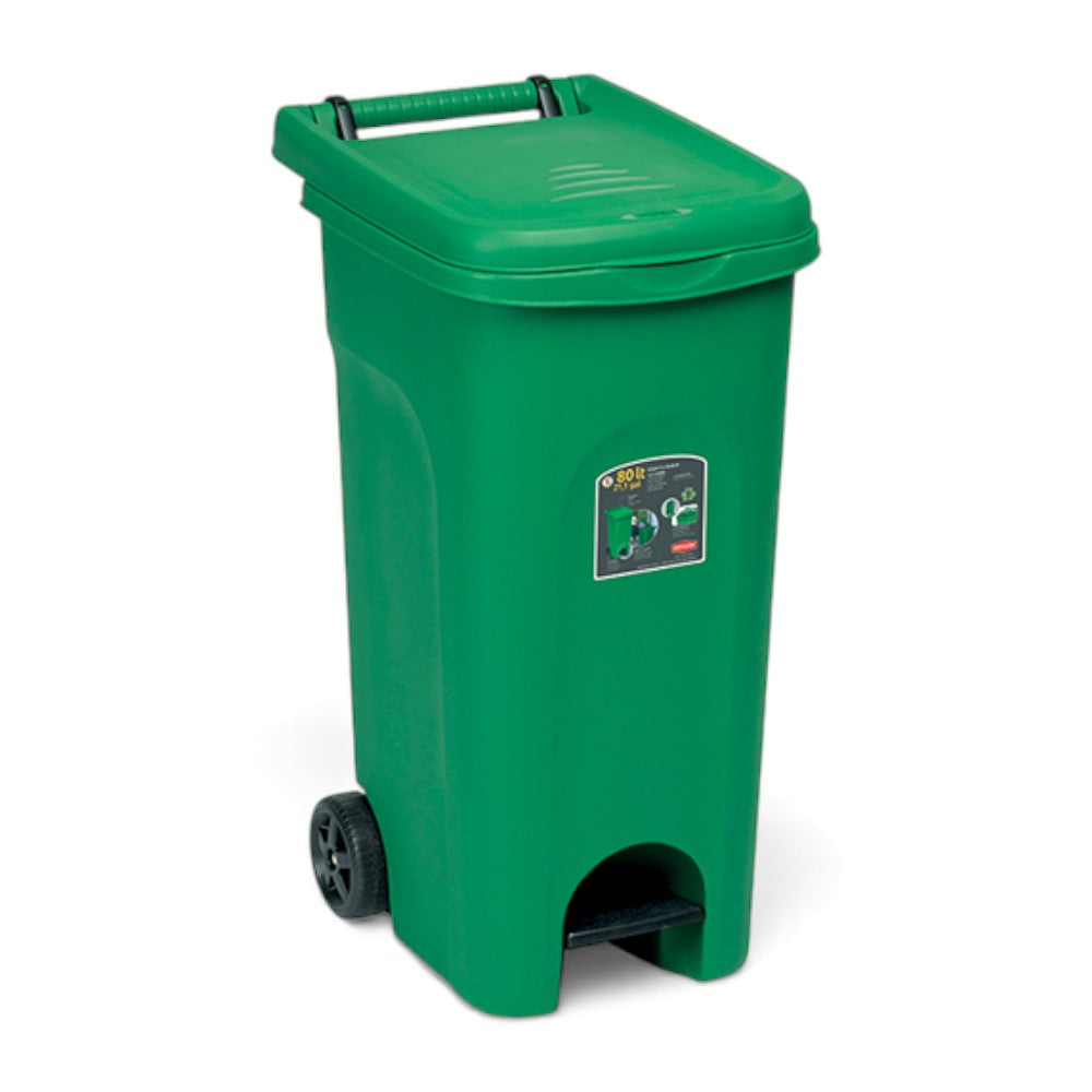 Bidone pattumiera carrellato in resina con anello fermasacco e pedale 80 lt. per racc...