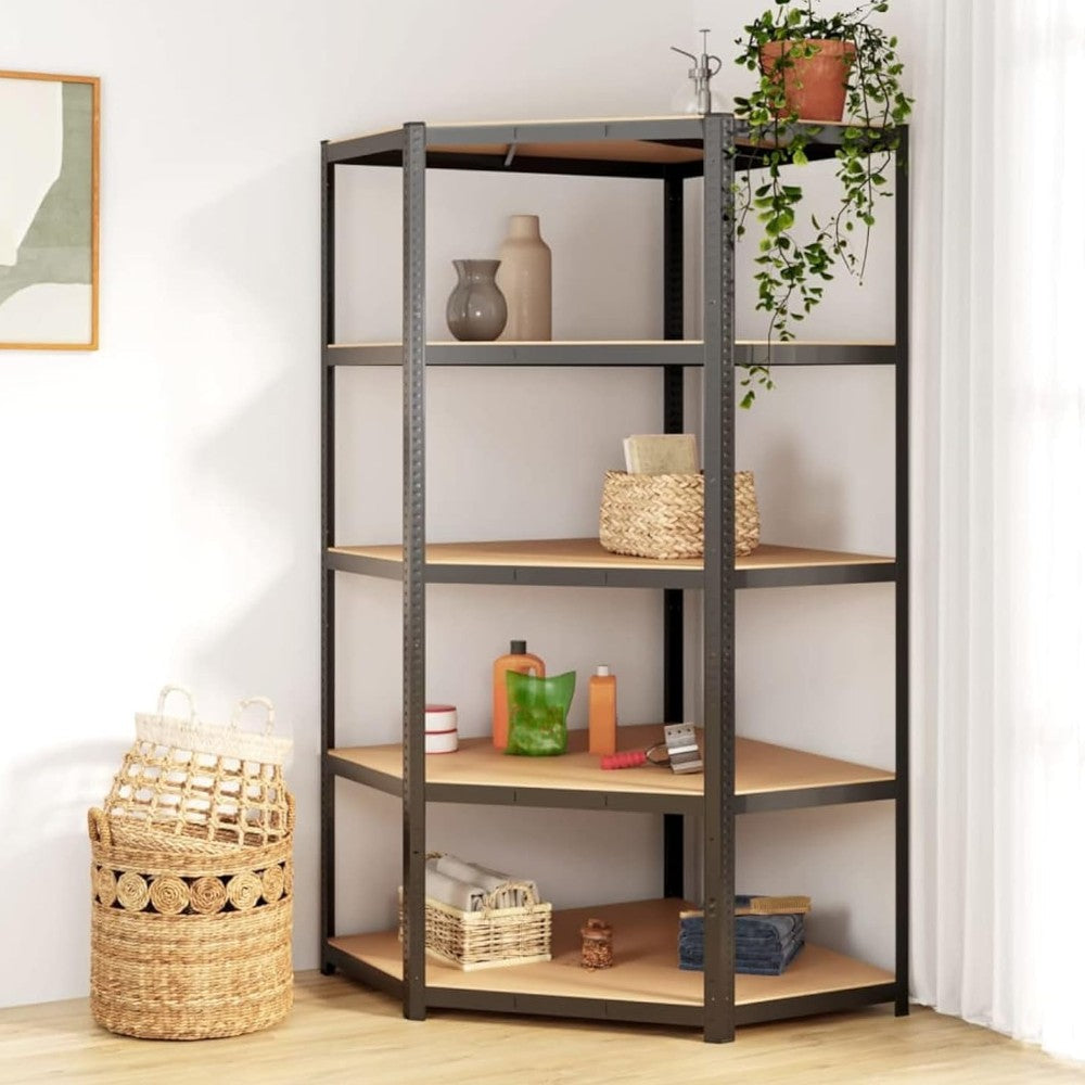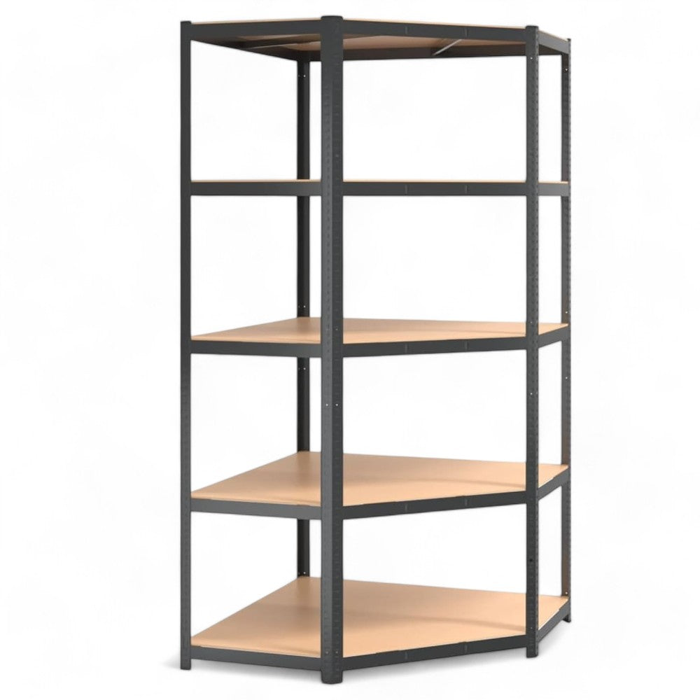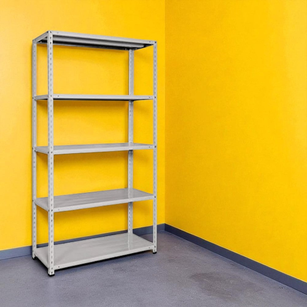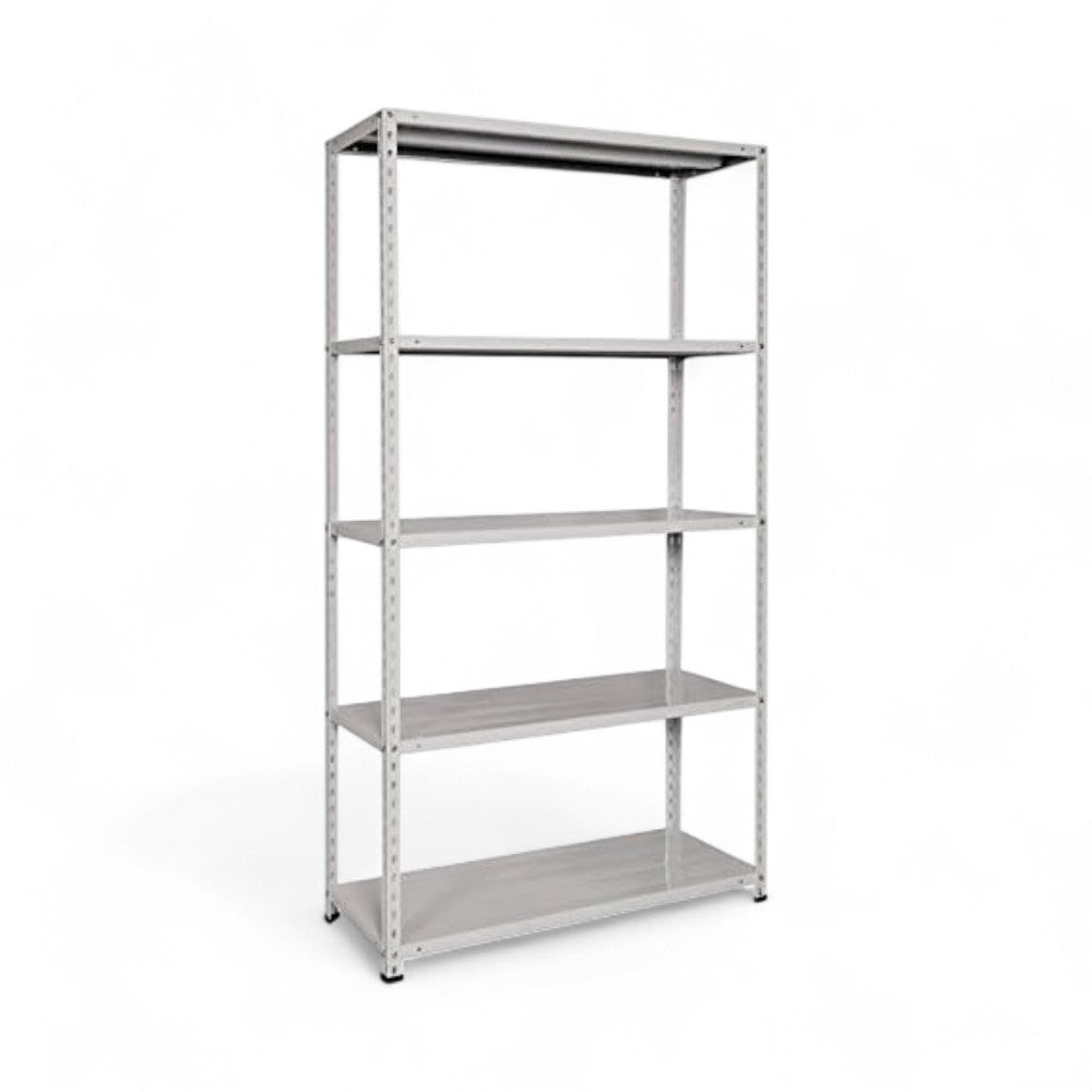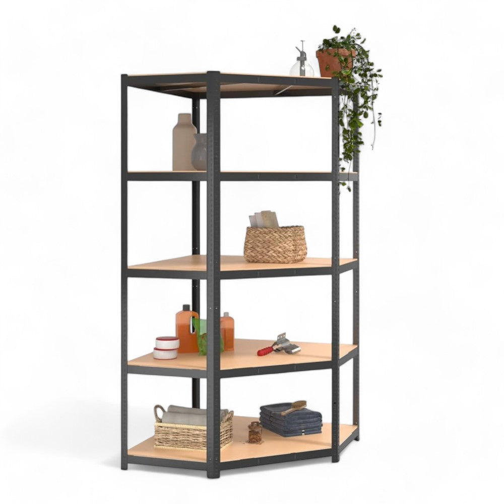 Scaffale in kit grigio con 5 ripiani angolari interi