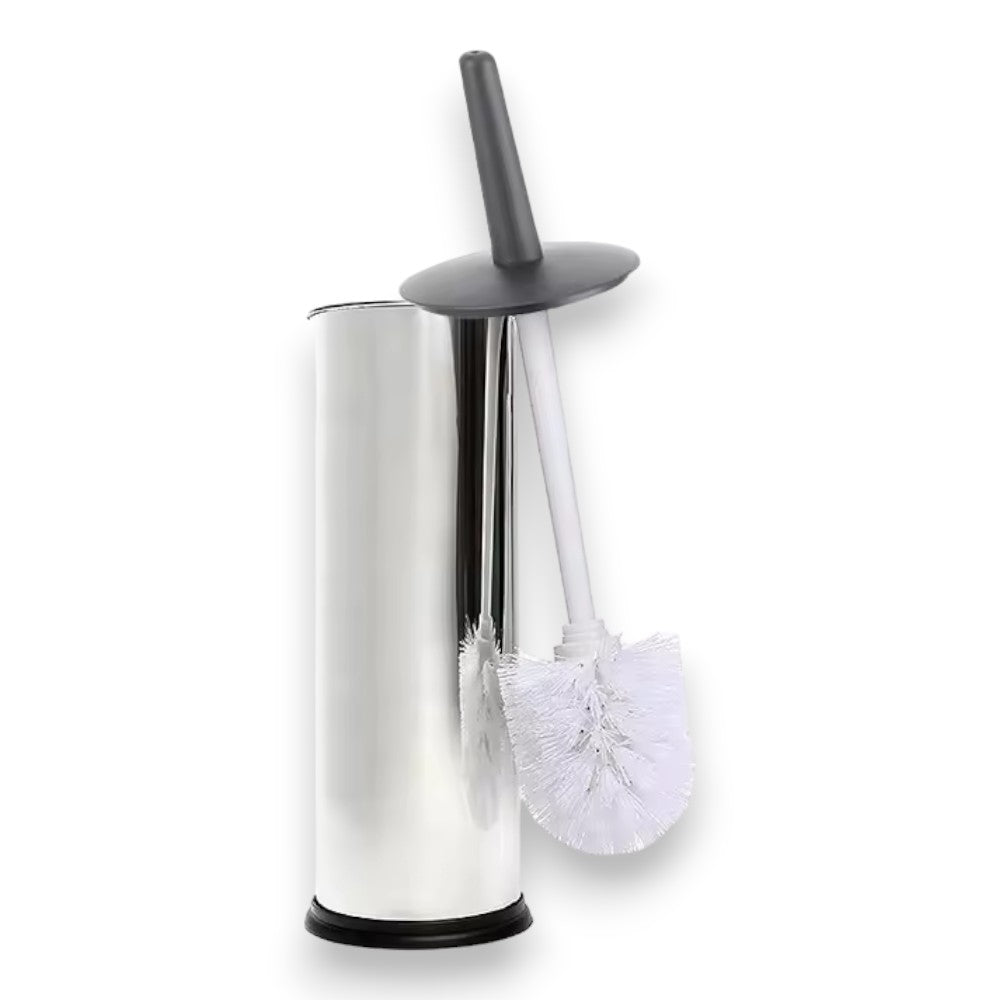 Portascopino d'appoggio in acciaio cromato con ciuffo in resina