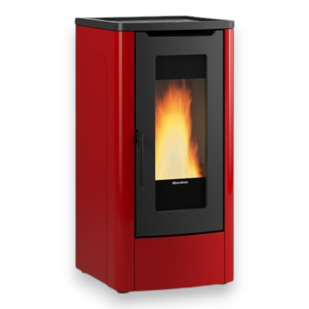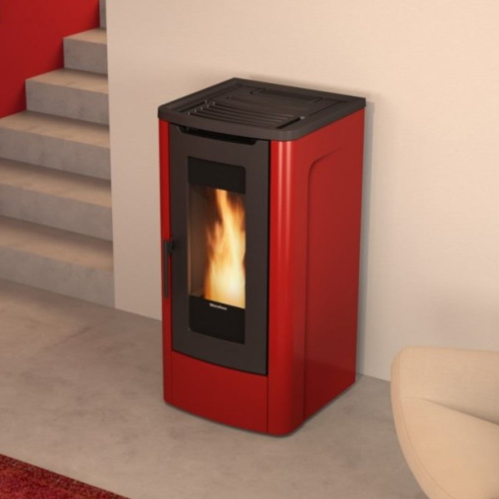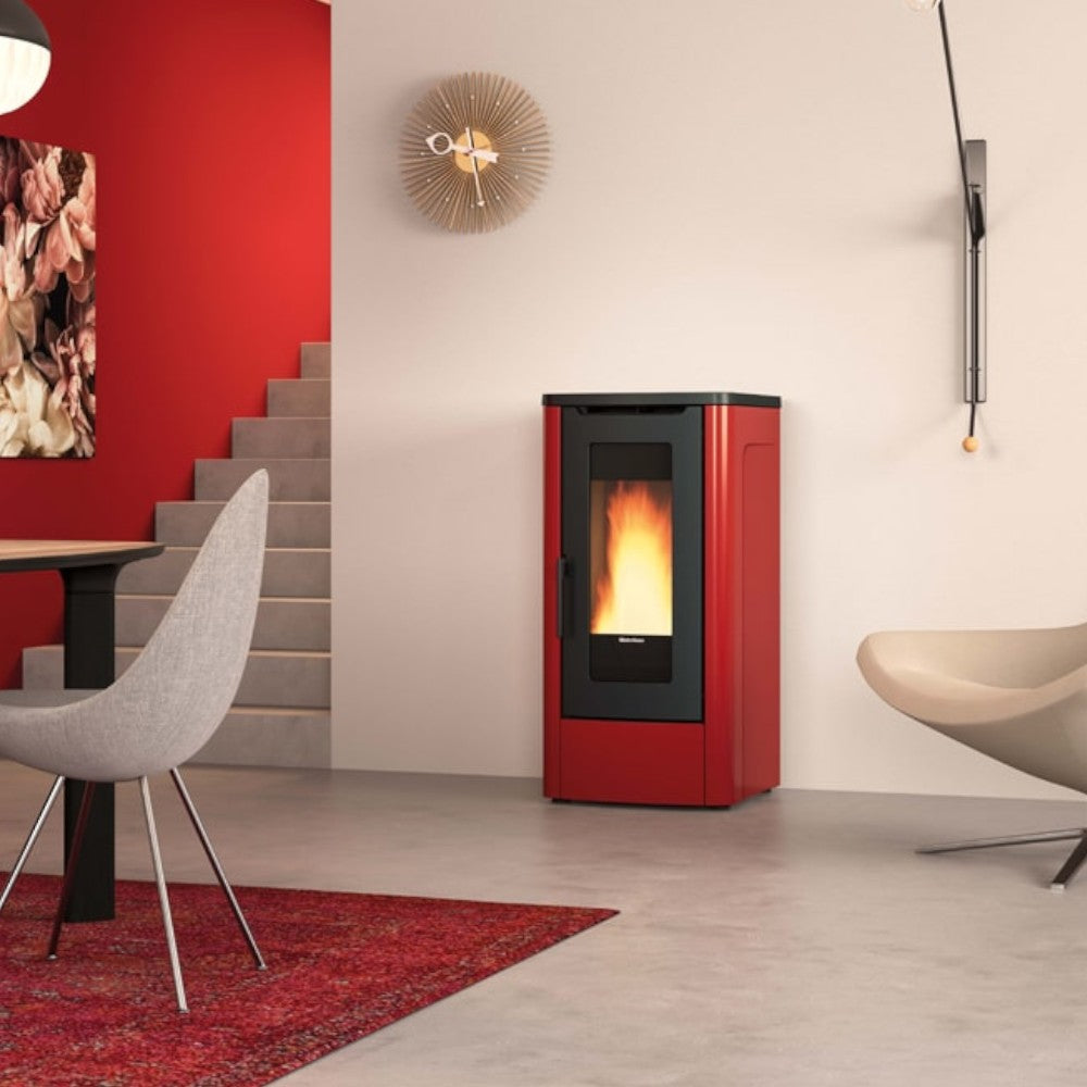 Stufa a Pellet 10 Kw rivestimento in acciaio rossa Dahiana Nordica