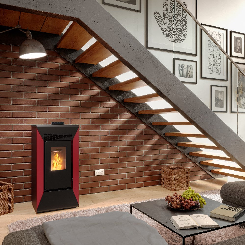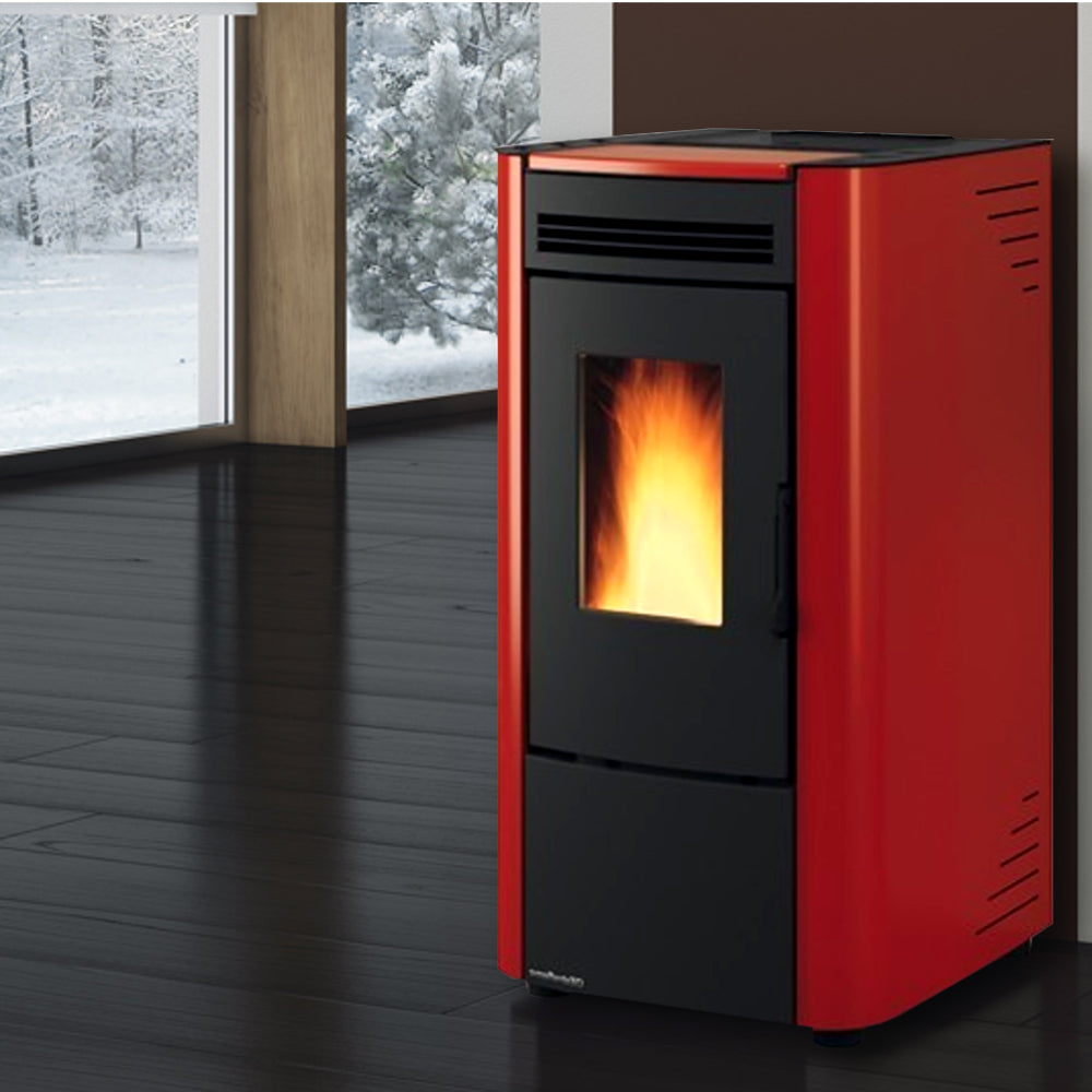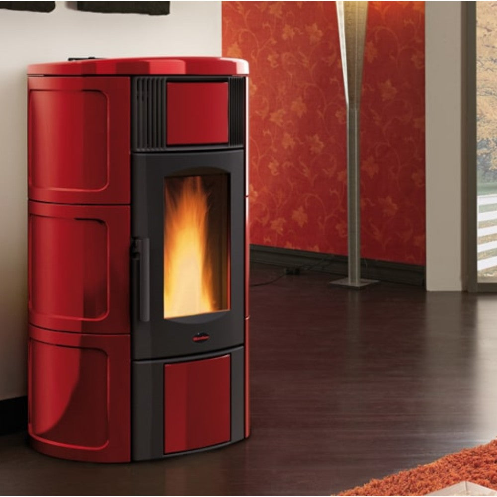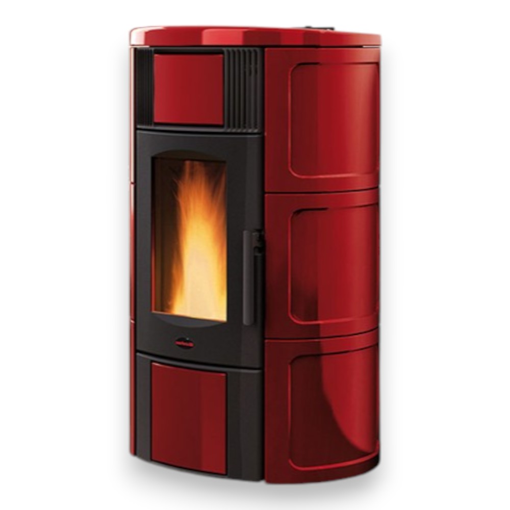 Stufa a Pellet 10 Kw rivestimento in acciaio rossa Dahiana Nordica