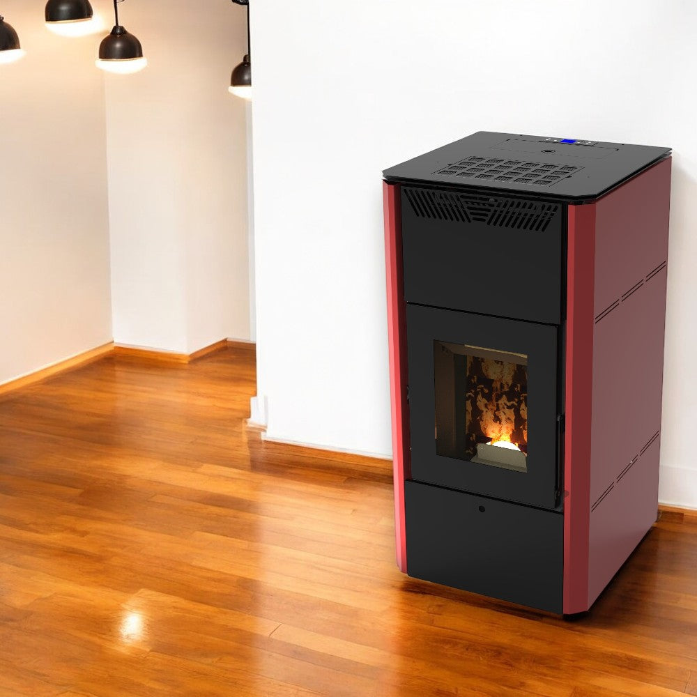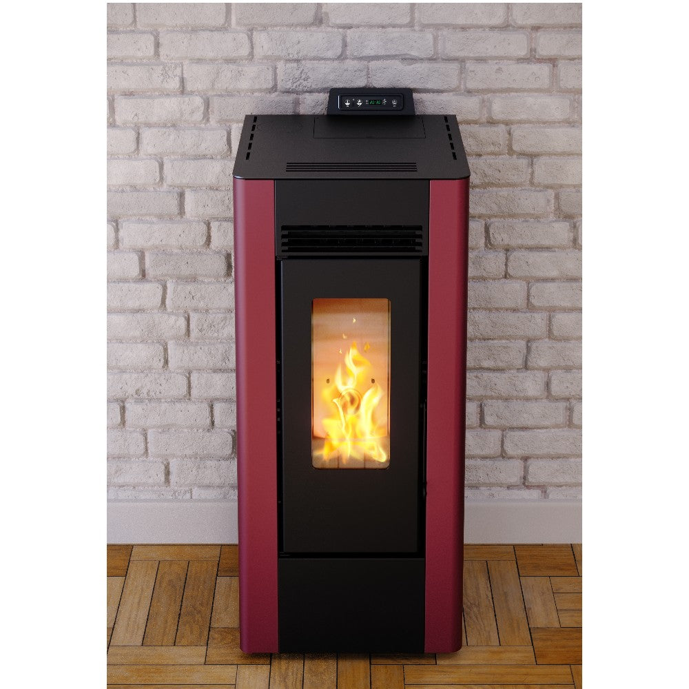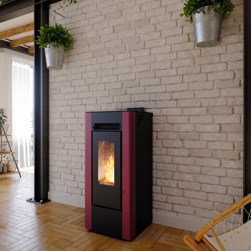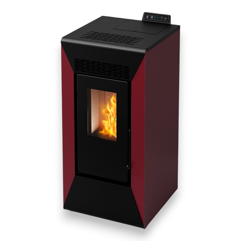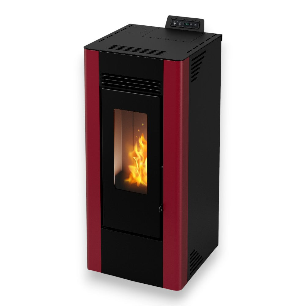 Stufa a pellet 44x45xH97cm 8 kw con capacità serbatoio 15 kg bordeaux