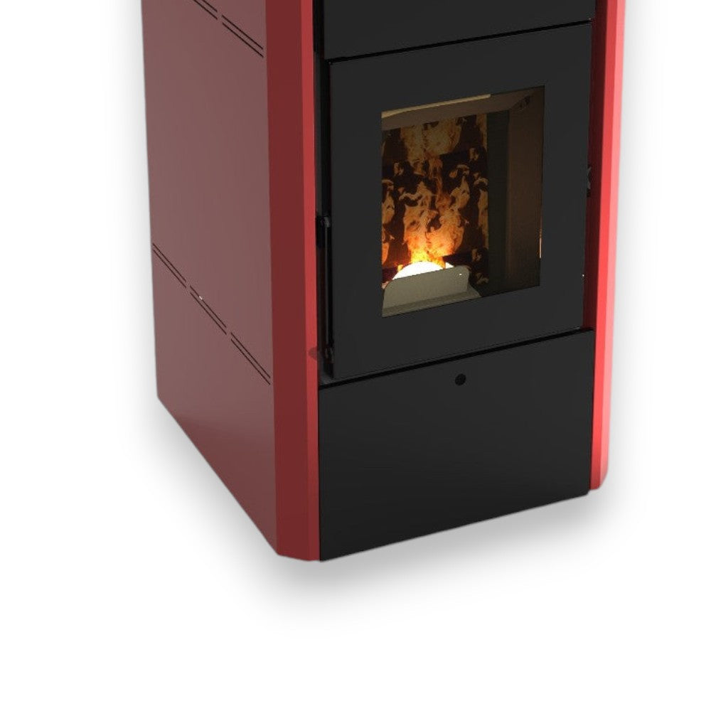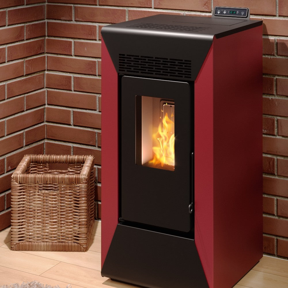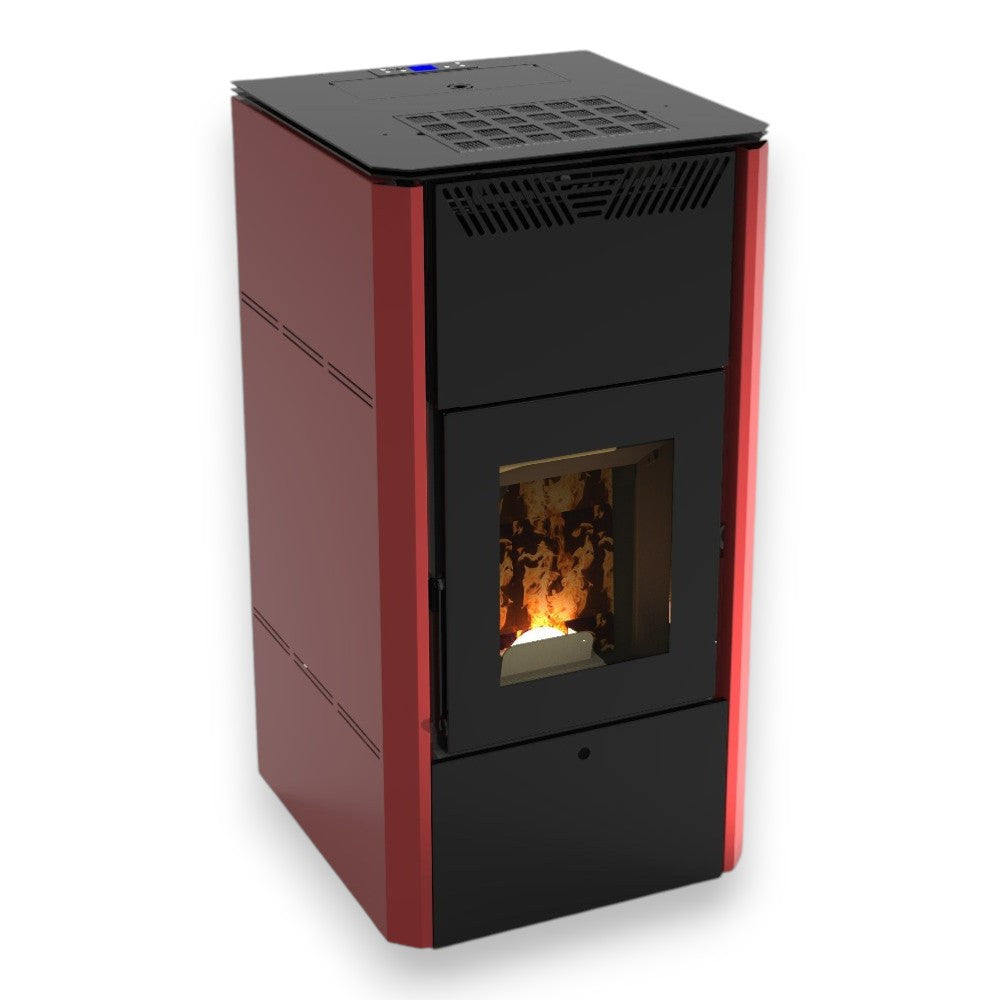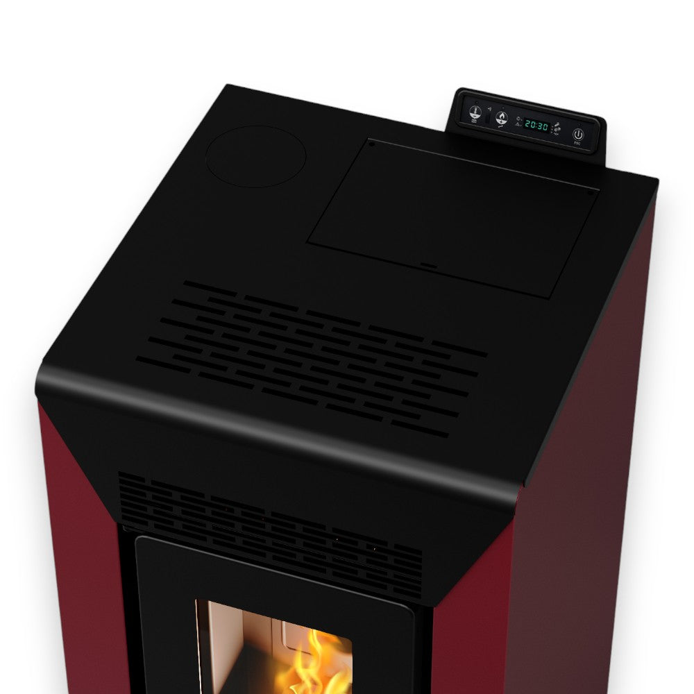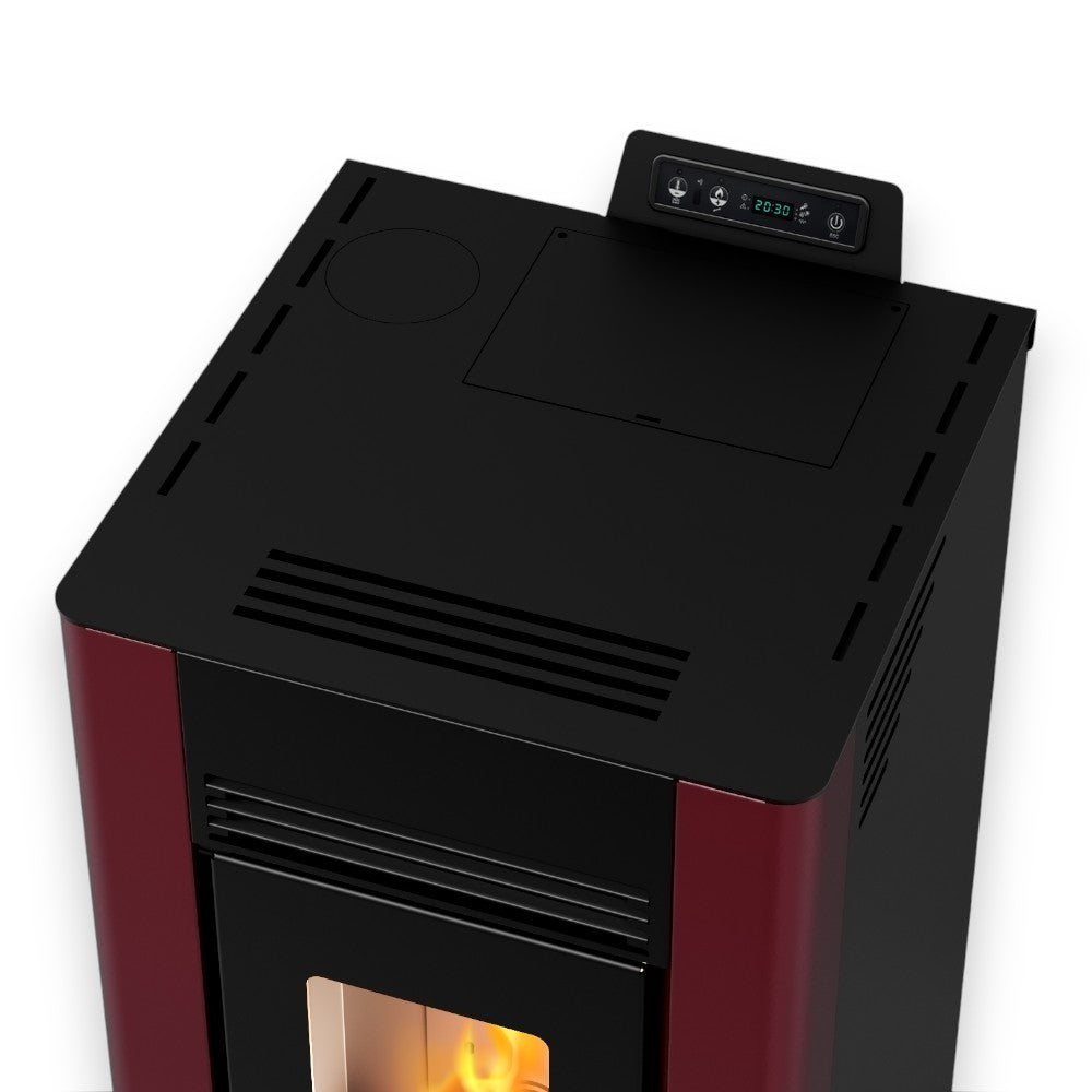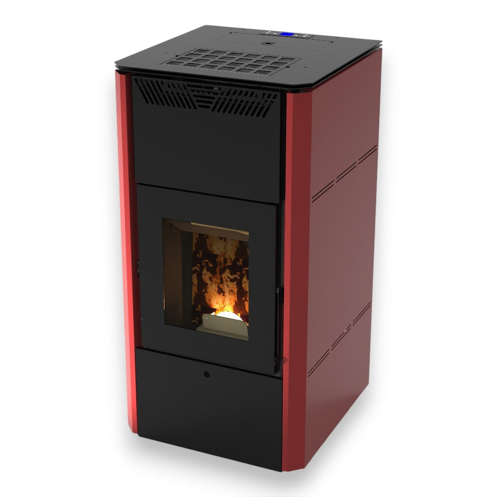 Stufa a pellet 44x45xH97cm 8 kw con capacità serbatoio 15 kg bordeaux