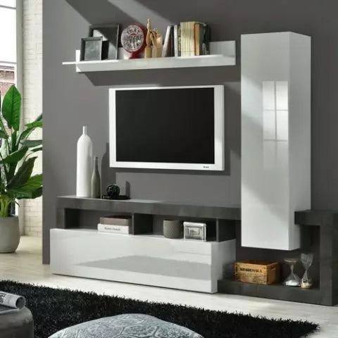 Mobile basso porta tv da interno soggiorno con 3 cassetti e ripiano laterale in legno...