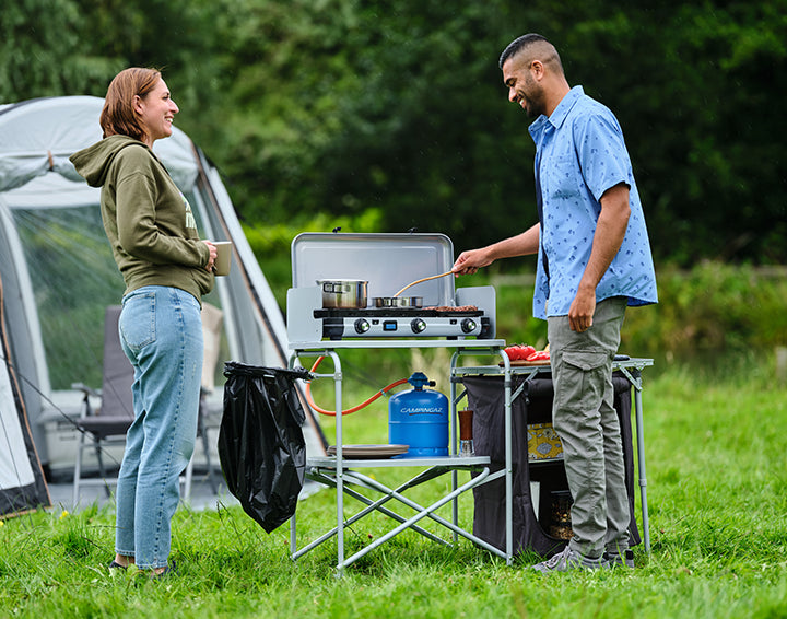 Fornellino gas portatile per campeggio con supporto plastica e stabilizzatore pentola...