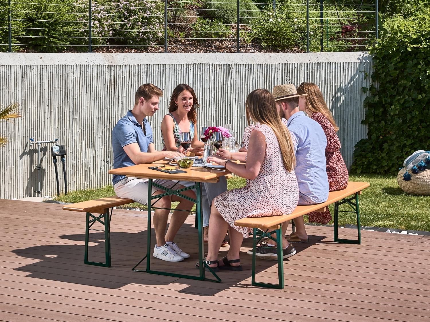 Set birreria tavolo con 2 gambe e panche in legno e acciaio per feste e campeggio 220...