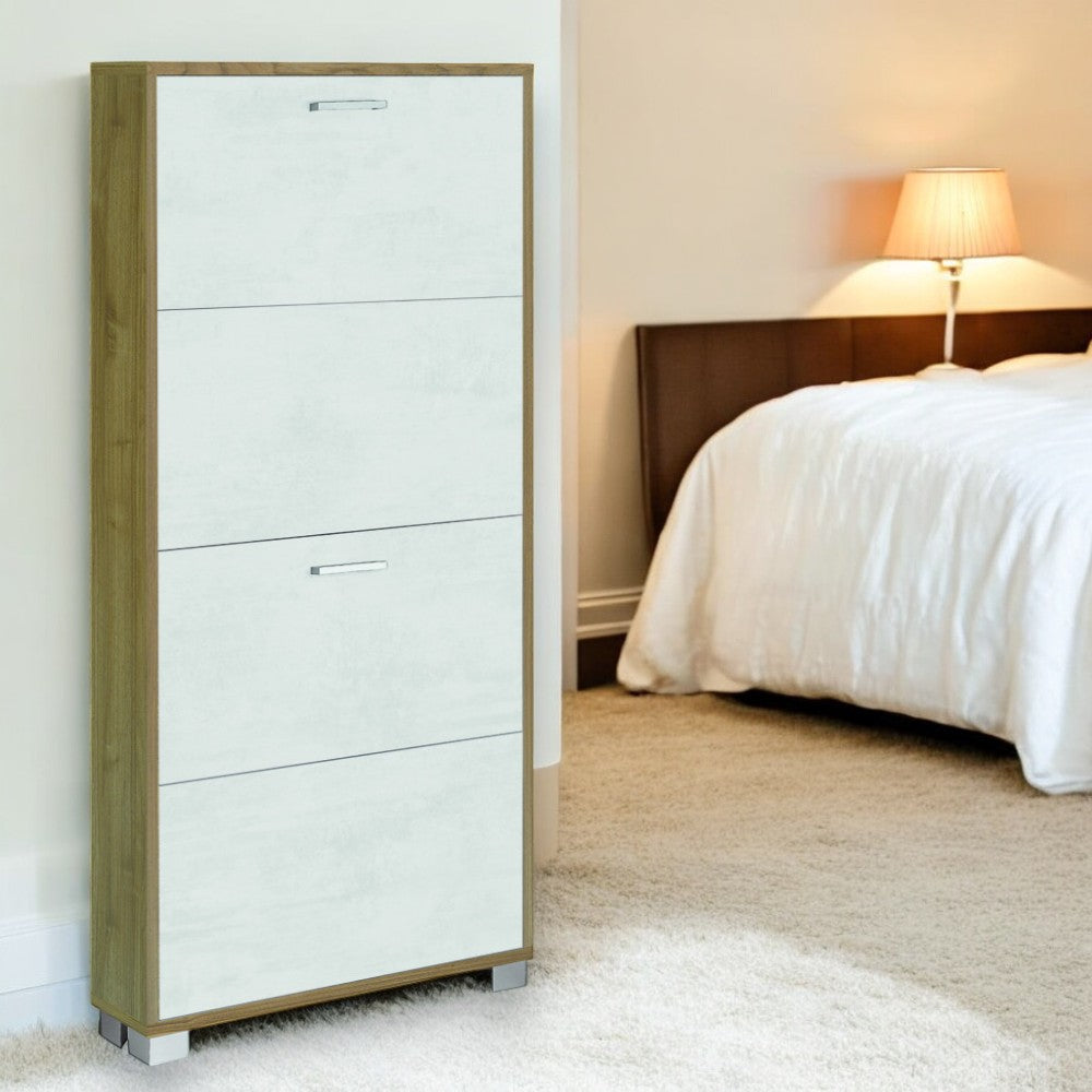 Pratica e funzionale con montaggio facile per averla a disposizione in qualsiasi momento. Realizzata con struttura in acciaio e tessuto in TNT impermeabile di colore blu con apertura frontale arrotolabile. Grazie alla cerniera a Zip le scarpe saranno ben protette dalla polvere. Ha una dimensione di 44x30x H89 cm circa e può ospitare un gran numero di scarpe e ciabatte (fino a 18 paia).