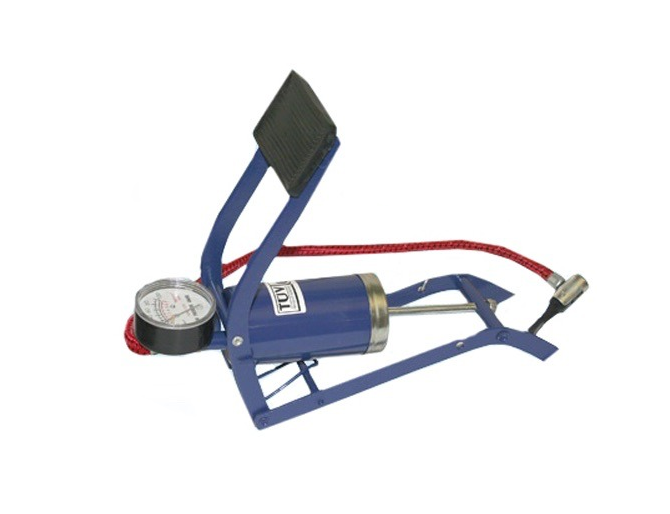 Pompa a pedale per gonfiaggio con manometro e tubo